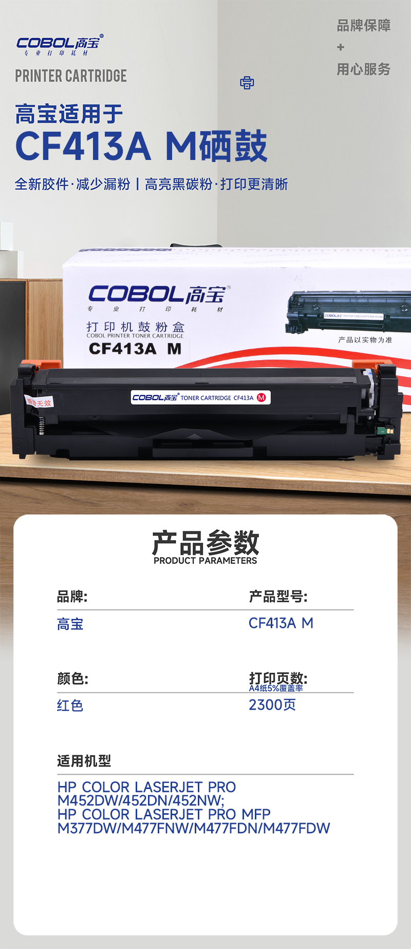 高宝COBOL CF413A M硒鼓红色适用惠普M452dw/452dn/452nw/M377d/支 佳人粉