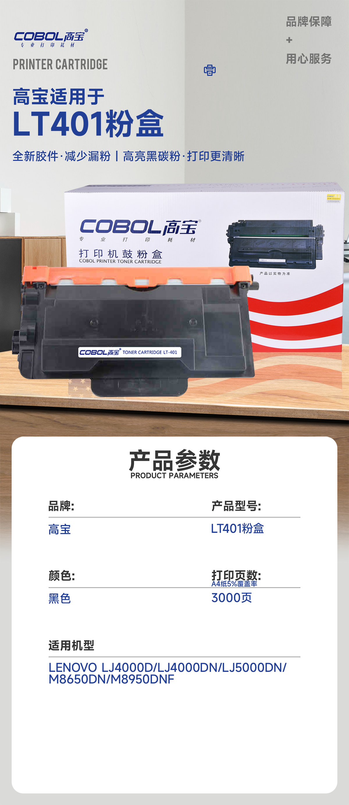 高宝COBOL LT401粉盒适用LENOVO LJ4000D/LJ4000DN/LJ5000D/支 曜石黑