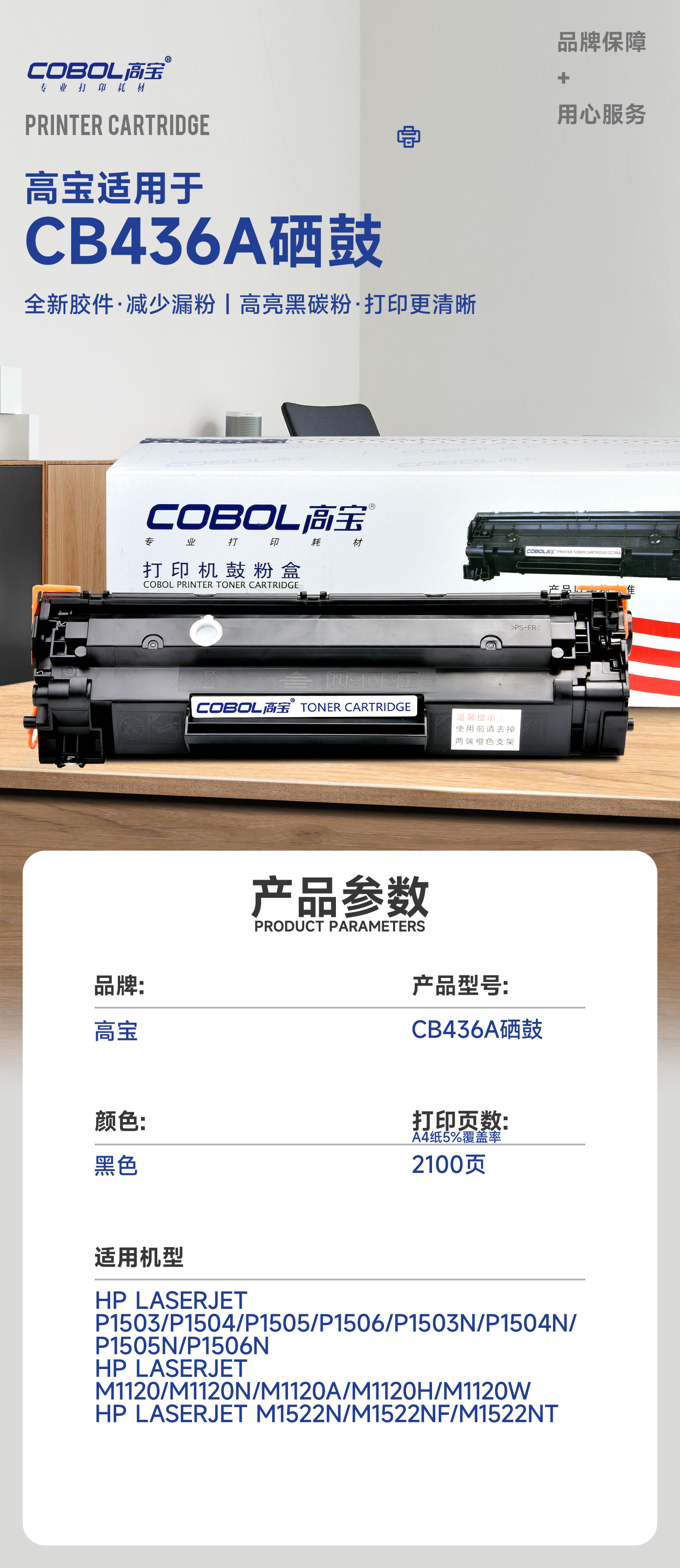 高宝COBOL CB436A硒鼓36A适用惠普HP P1505 P1505N M1120 M11/支 曜石黑