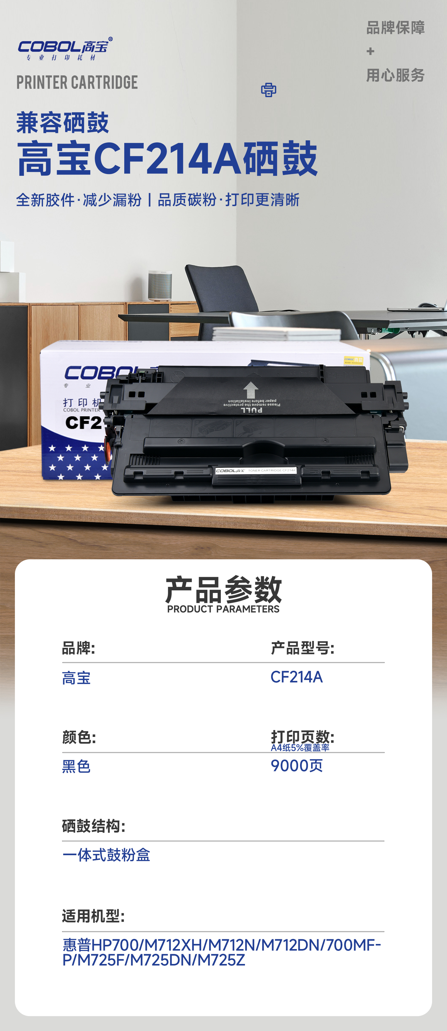 高宝COBOL CF214A 硒鼓黑色适用惠普HP700/M712xh/M712n/M712dn/支 曜石黑