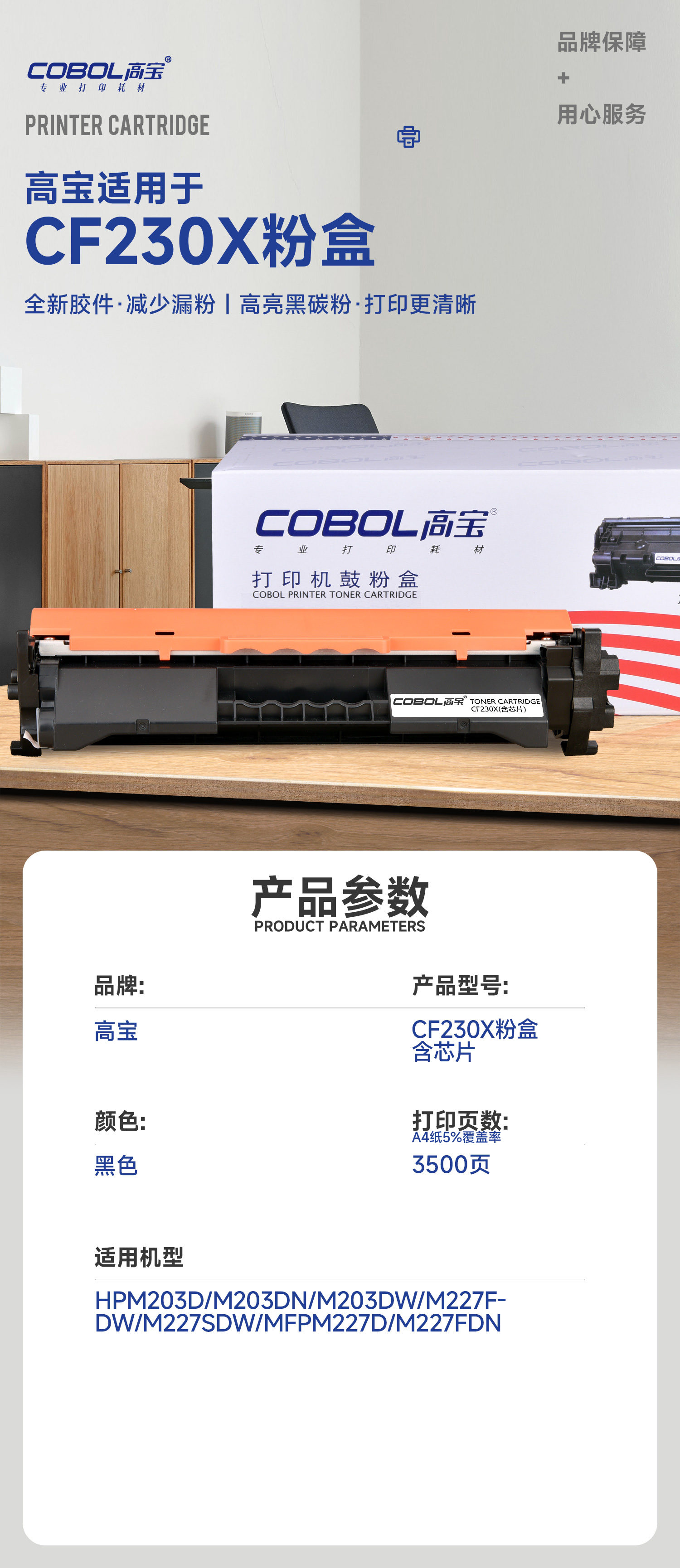 高宝COBOL CF230X 大容量含芯片适用HP 230A M227fdw 227sdn203/支 曜石黑