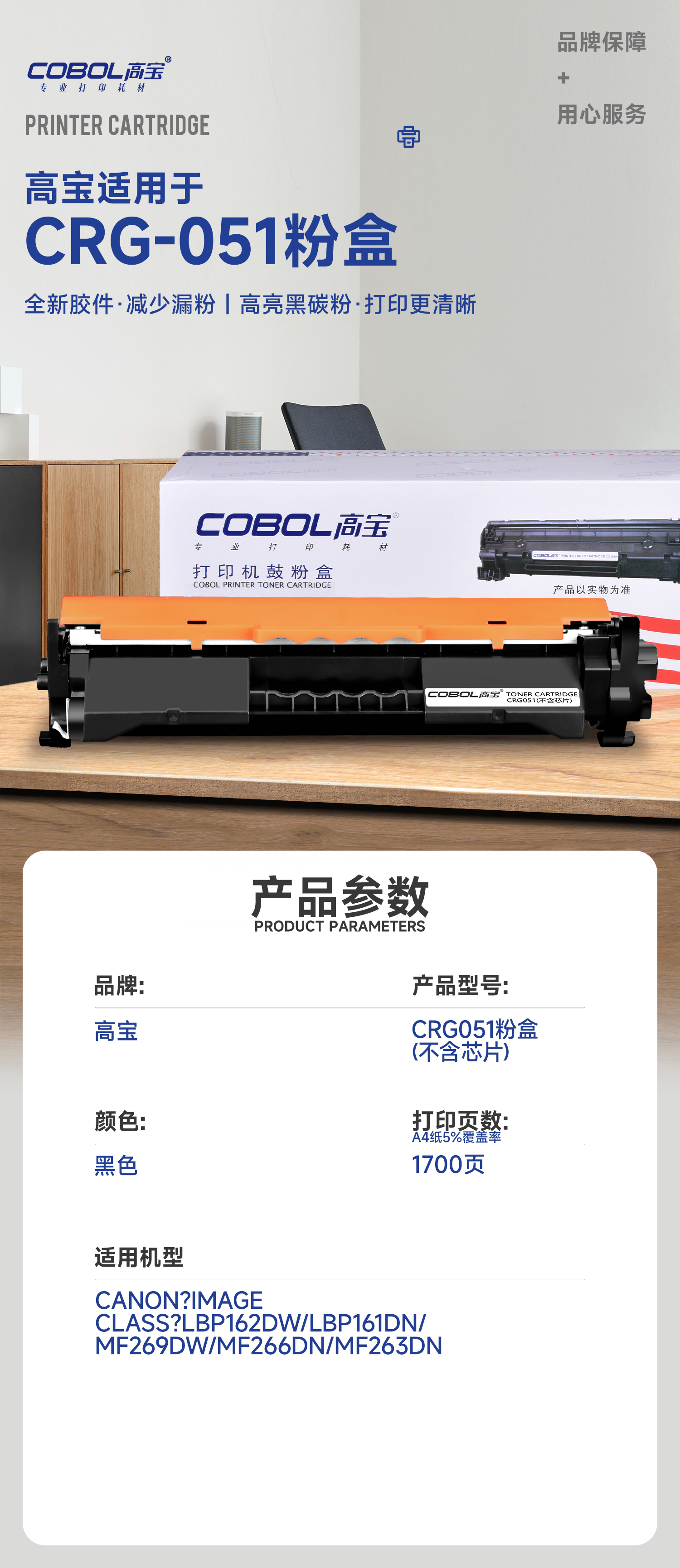 高宝COBOL CRG051粉盒适用佳能LBP161dn 162dw MF263dn 266dn/支 曜石黑