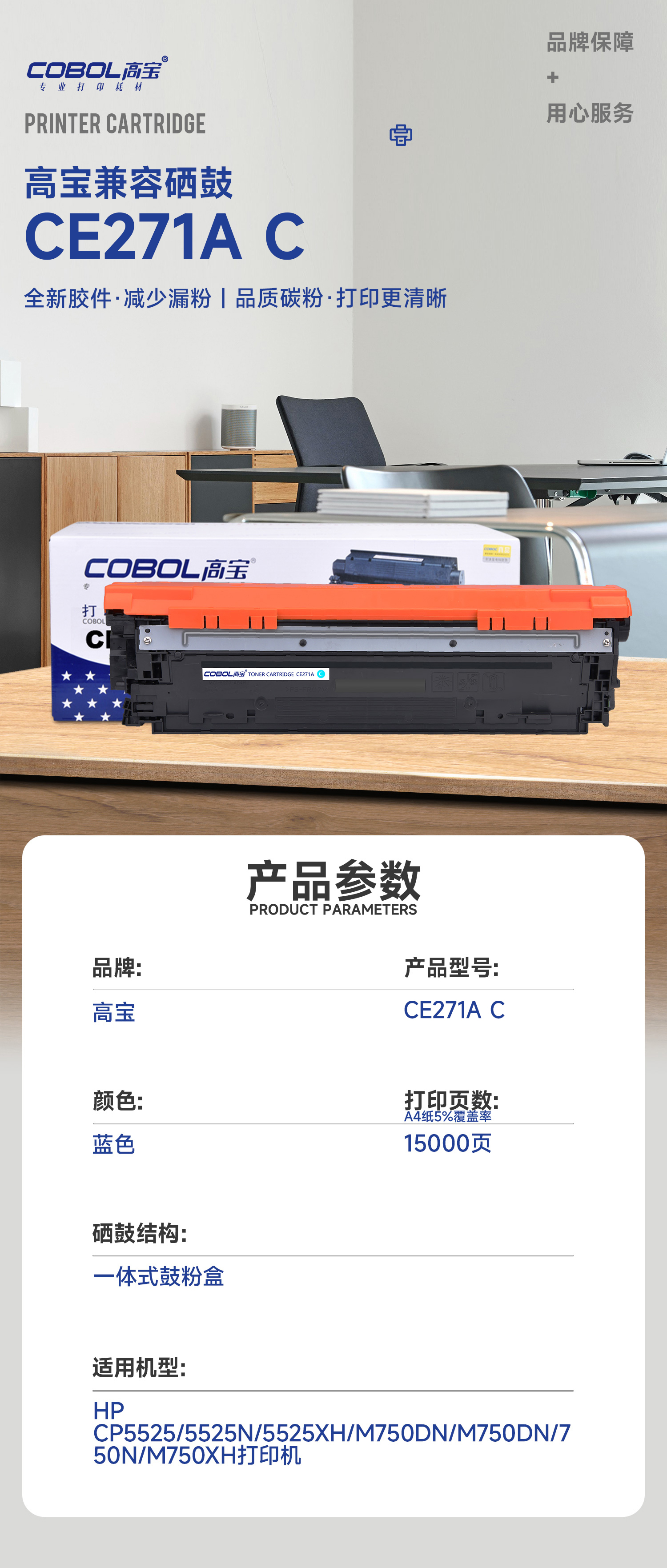 高宝COBOL CE271A硒鼓蓝色适用HP CP5525/5525n/5525xh/M750d/支 宝石蓝