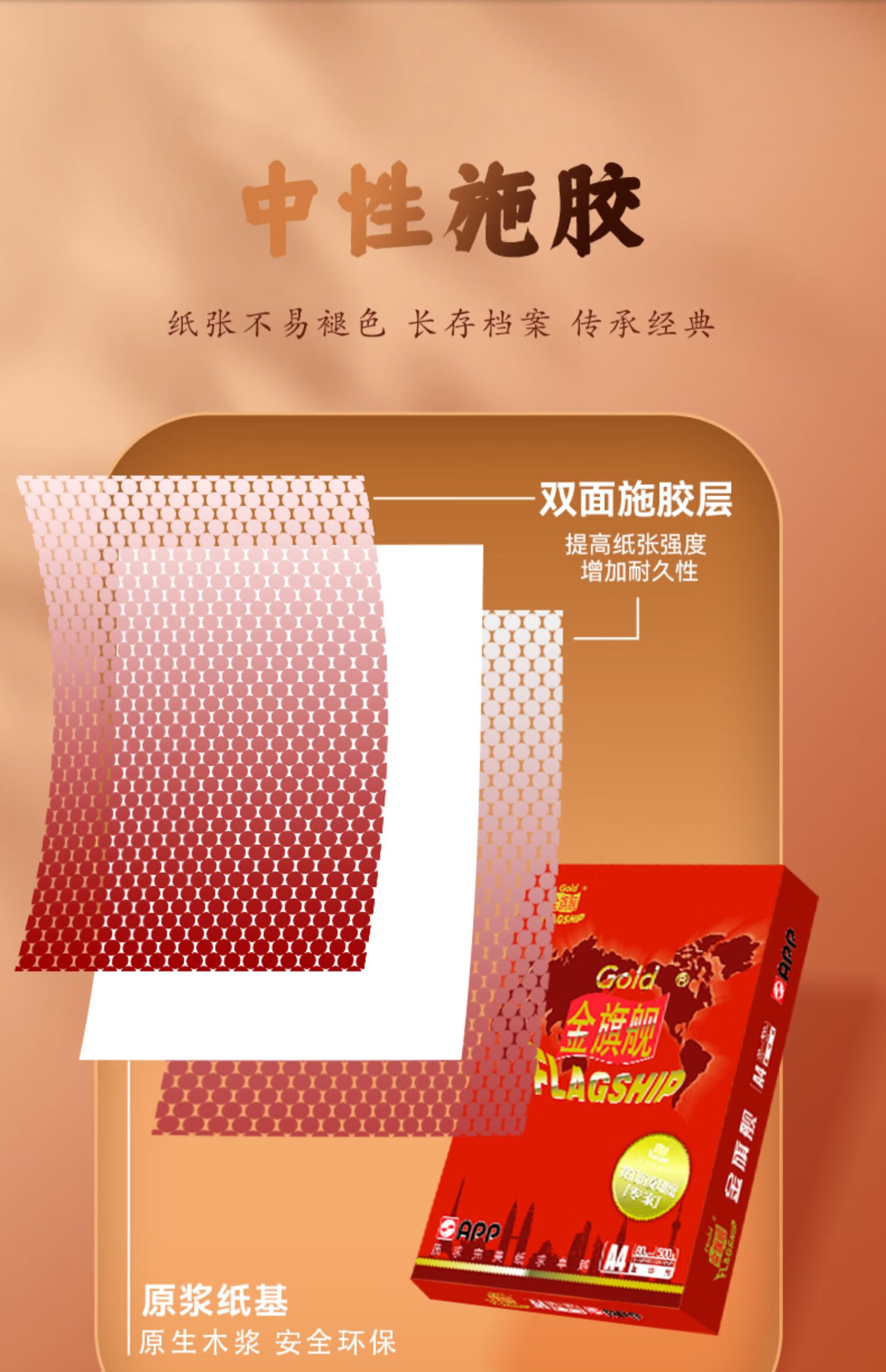 金旗舰(GOLD FLAGSHIP)A4打印纸复印纸 70g 5包装整箱(2500张) 白色