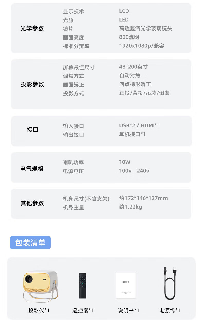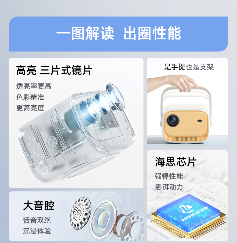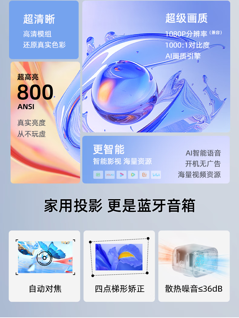 Amoi/夏新C30pro投影仪家用智能办公投影机便携游戏投影(亮度升级 自动对焦 超清画质 )台 白色