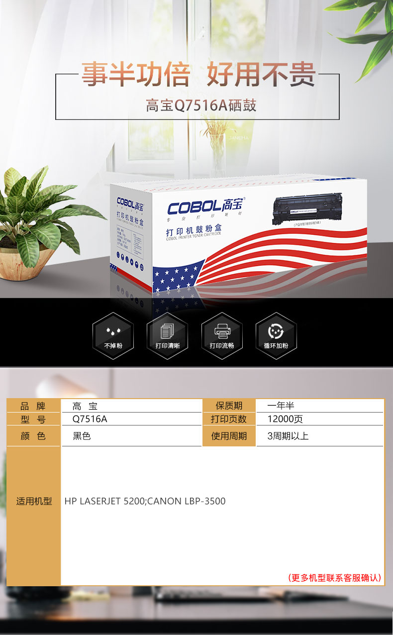 高宝COBOL Q7516A硒鼓适用惠普HP 5200N 5200L 5200TN 5200DN/支 曜石黑