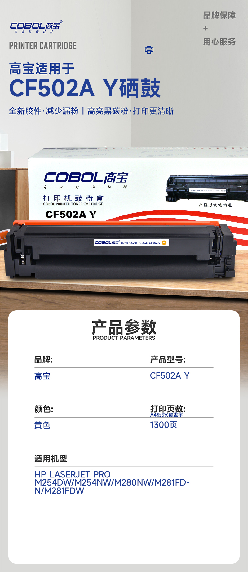 高宝COBOL CF502A Y硒鼓黄色适用惠普M254dw/M254nw/M280nw/M28/支 黄色