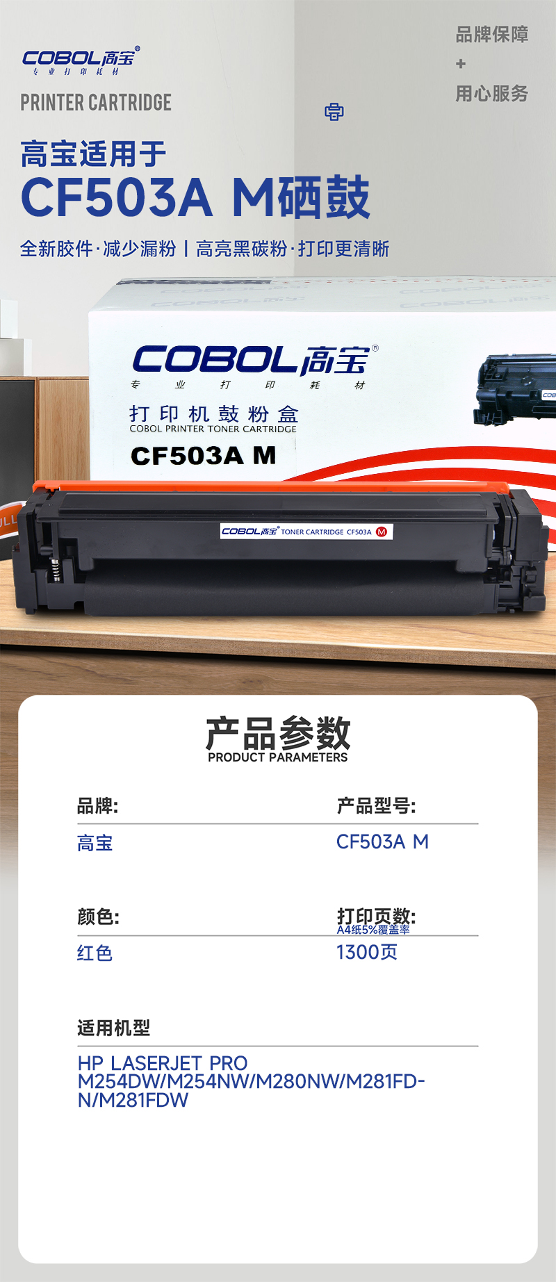 高宝COBOL CF503A M硒鼓红色适用惠普M254dw/M254nw/M280nw/M28/支 红色