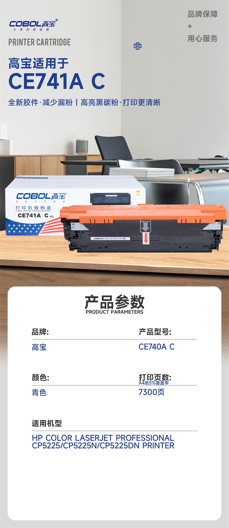高宝(COBOL)CE741A C适用惠普CP5225 CP5225N CP5225DN打印机墨/支 宝石蓝