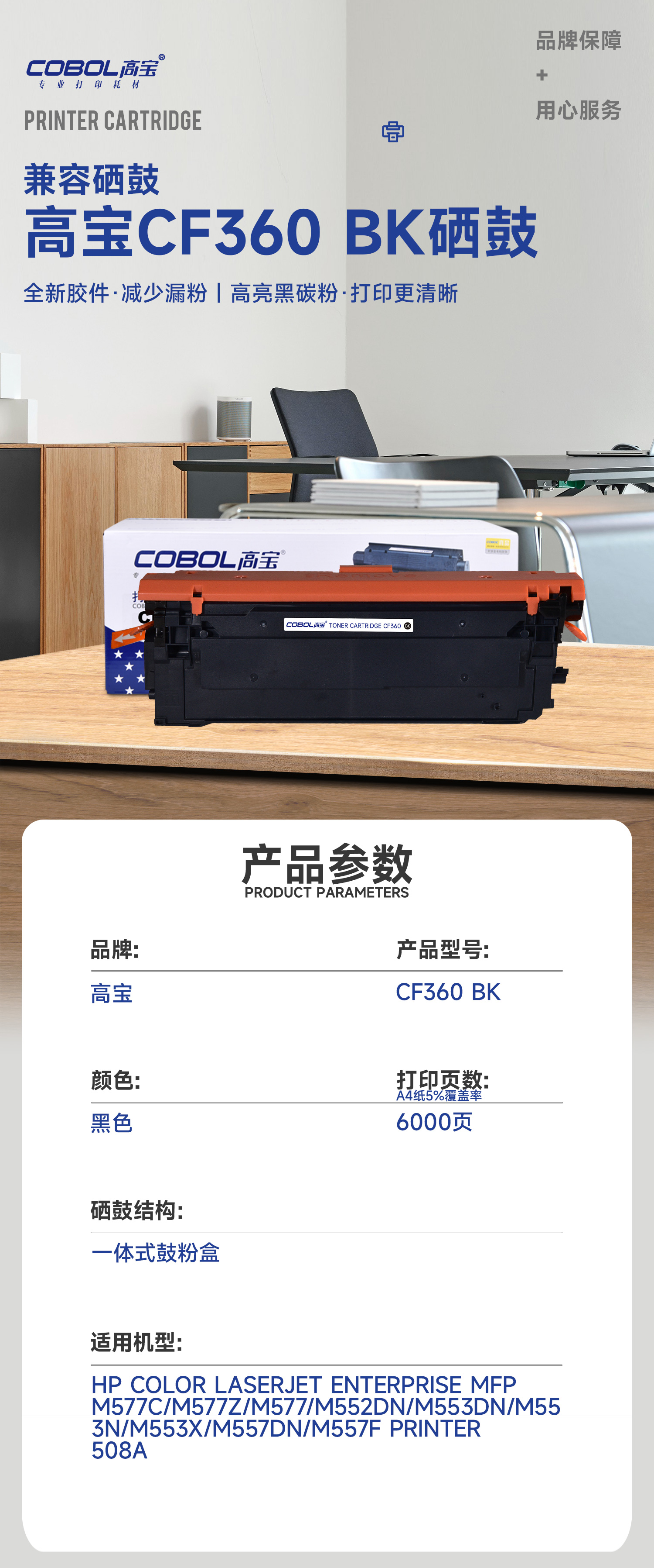 高宝COBOL CF360A BK硒鼓黑色适用惠普m553dn m577dn m576 墨盒/支 曜石黑