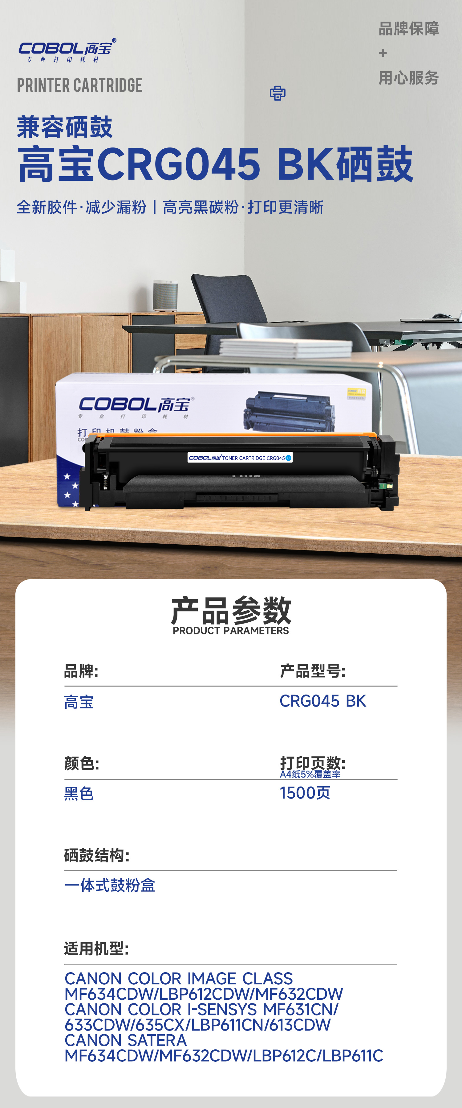 高宝COBOL CRG045硒鼓适用佳能MF635Cx 633cdw LBP611 LBP613/支 曜石黑