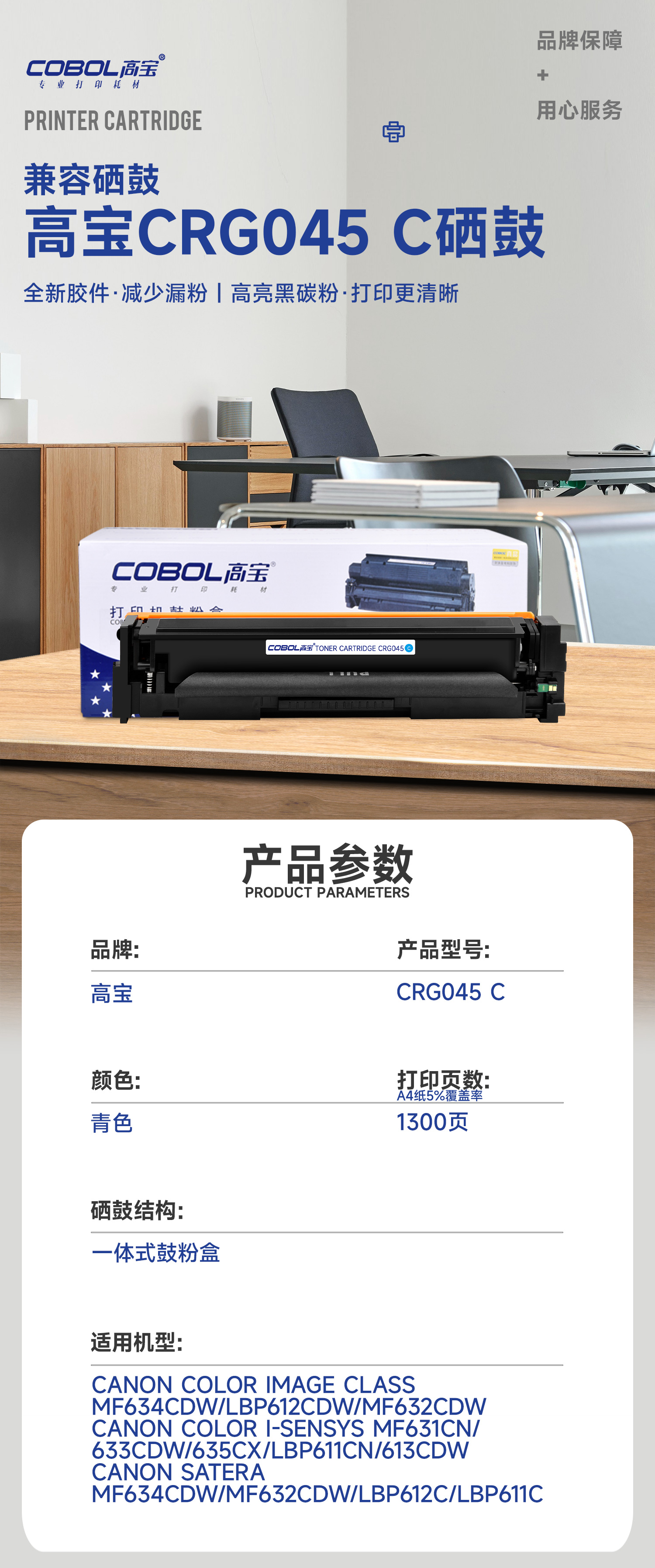 高宝COBOL CRG045硒鼓适用佳能MF635Cx 633cdw LBP611 LBP613/支 宝石蓝
