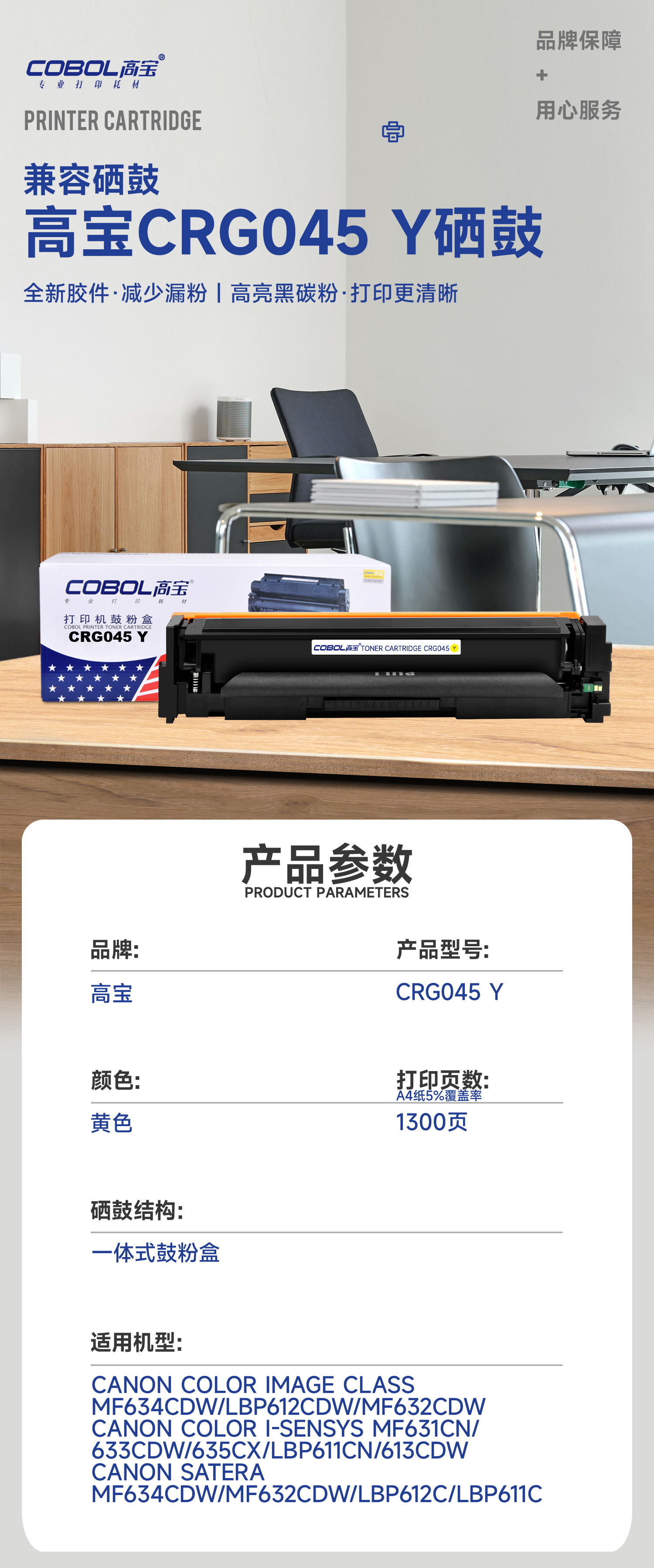 高宝COBOL CRG045硒鼓适用佳能MF635Cx 633cdw LBP611 LBP613/支 黄色