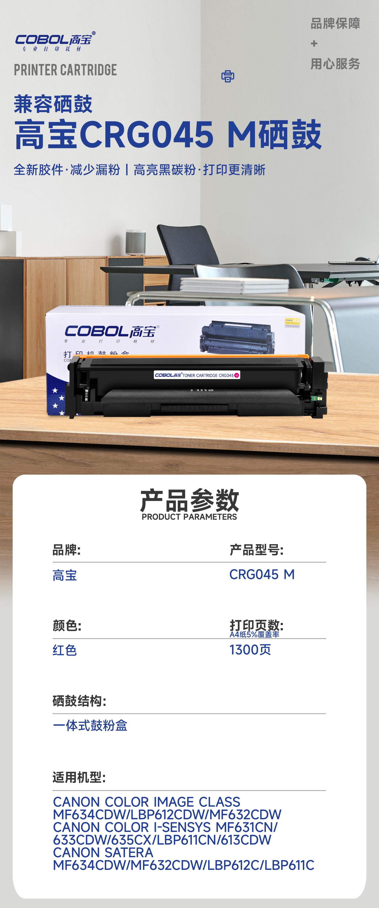 高宝COBOL CRG045硒鼓适用佳能MF635Cx 633cdw LBP611 LBP613/支 红色