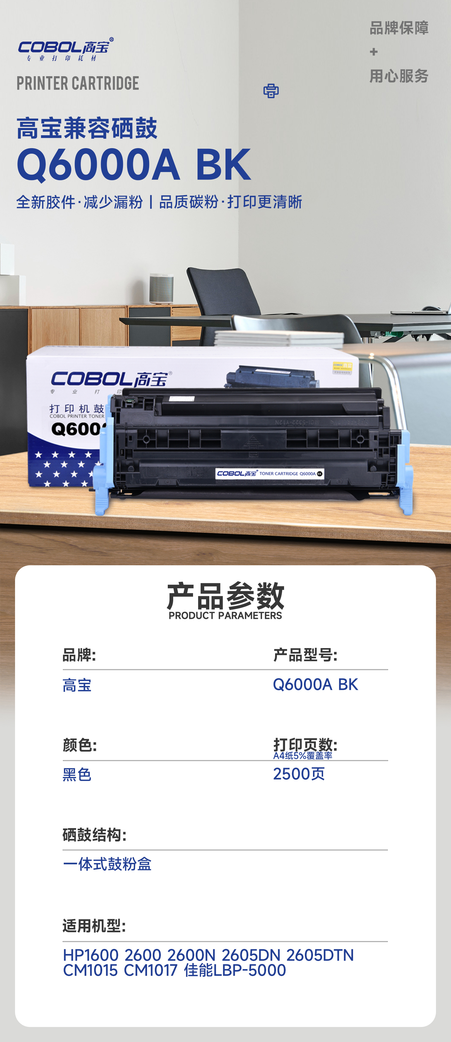 高宝COBOL Q6000A硒鼓黑色适用惠普HP1600 2600 2600N 2605DN2 /支 曜石黑