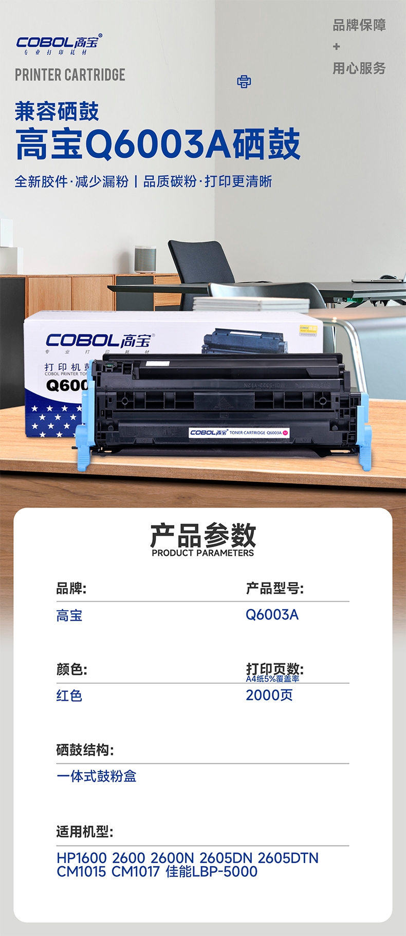 高宝COBOL Q6003A硒鼓红色适用惠普HP1600 2600 2600N 2605DN2 /支 红色