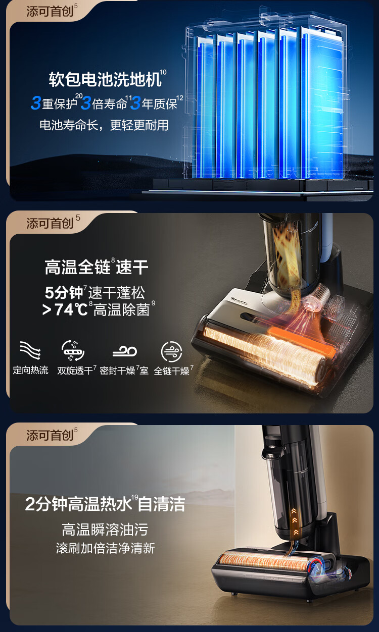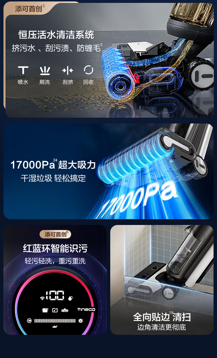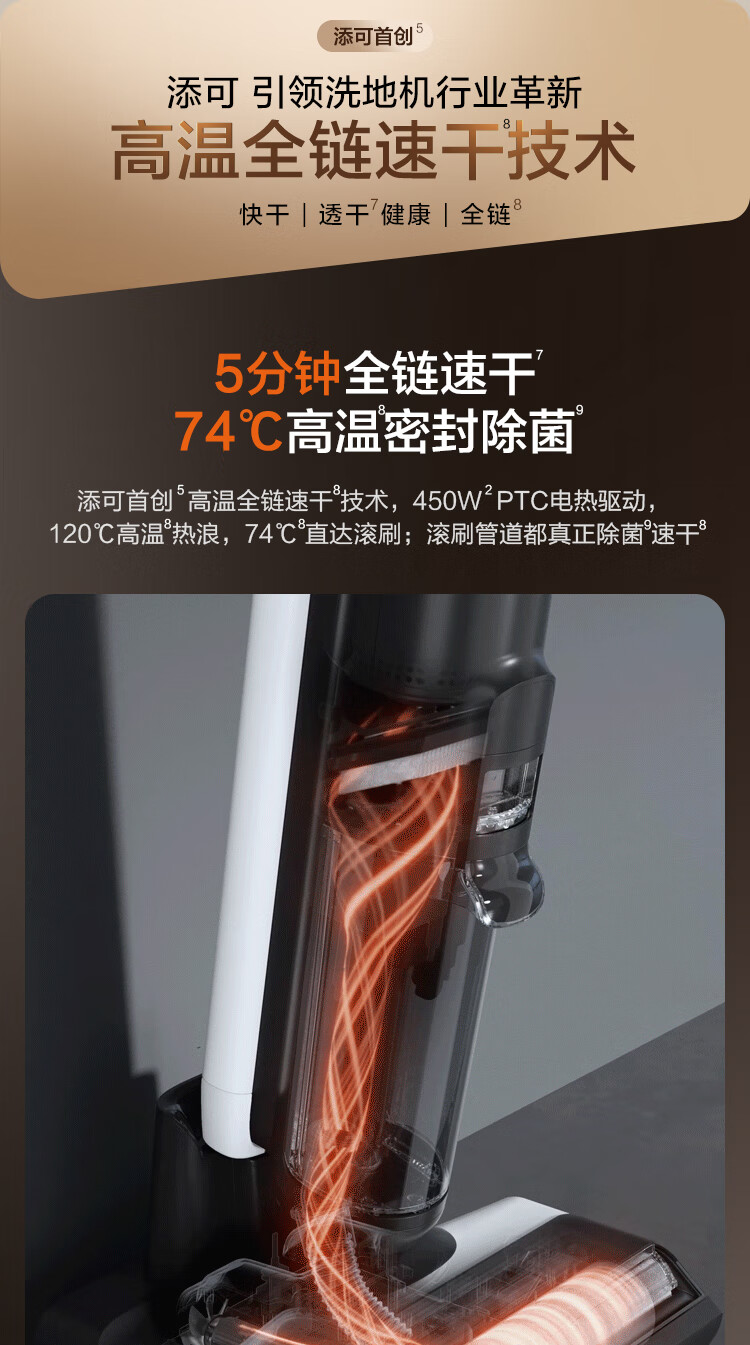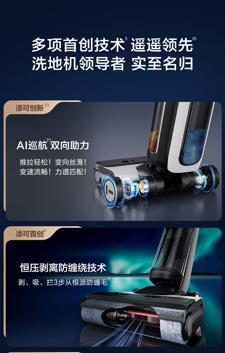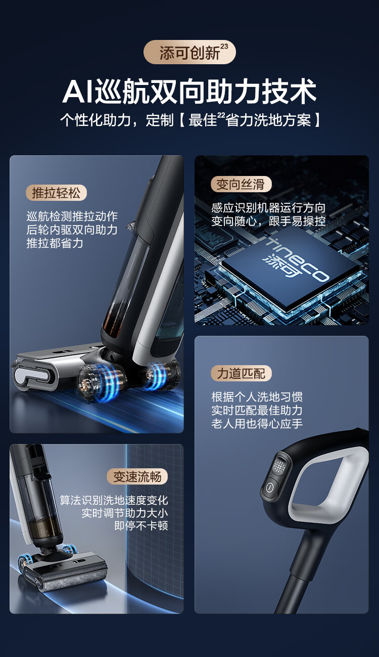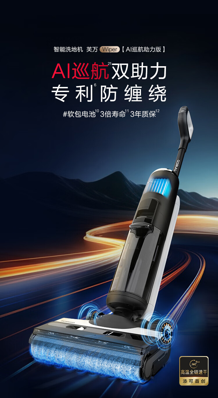 添可(TINECO)洗地机芙万 Wiper AI巡航双助力无线智能除菌洗拖一体FW24052EC(台 黑色