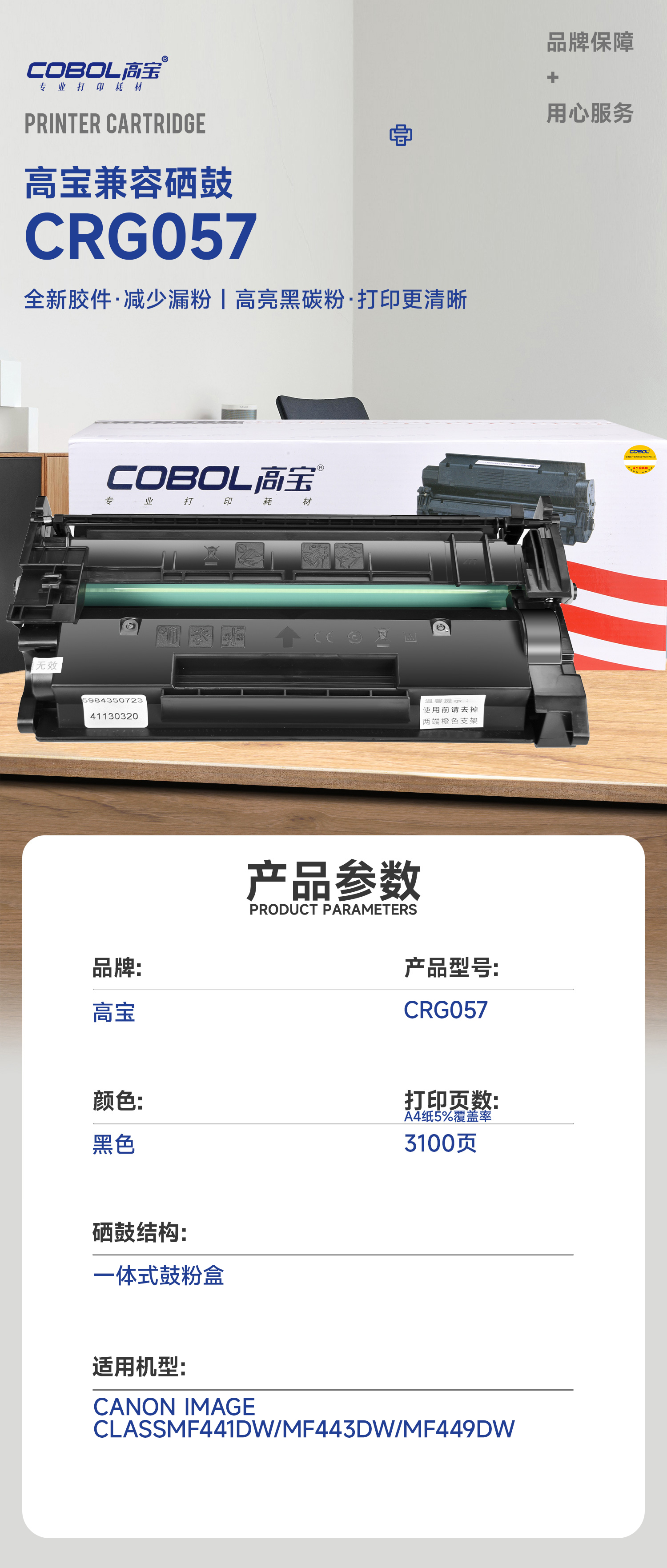 高宝COBOL CRG057硒鼓粉盒不含芯片适用佳能Canon MF445粉盒448/449dw/支 曜石黑