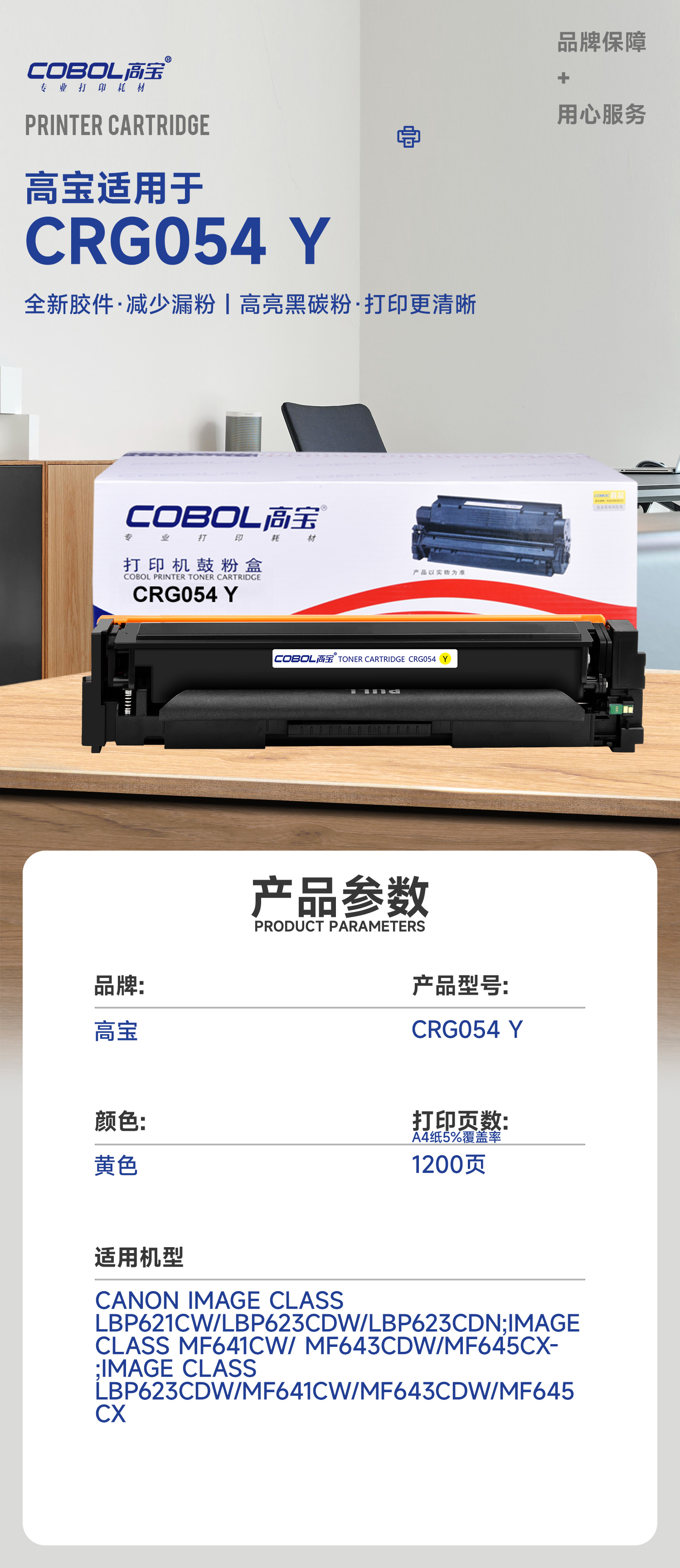 高宝COBOL CRG054硒鼓黄色适用佳能LBP621Cw LBP623Cdn/Cdw粉盒 M/支 黄色