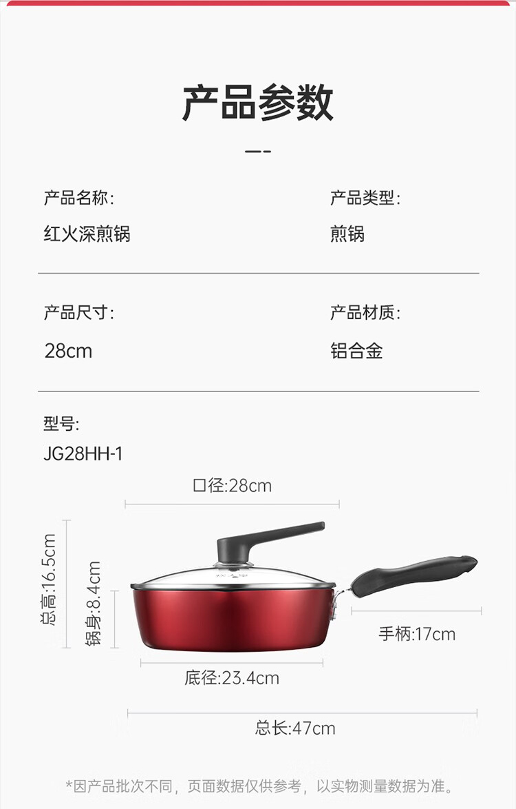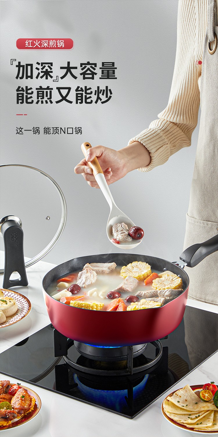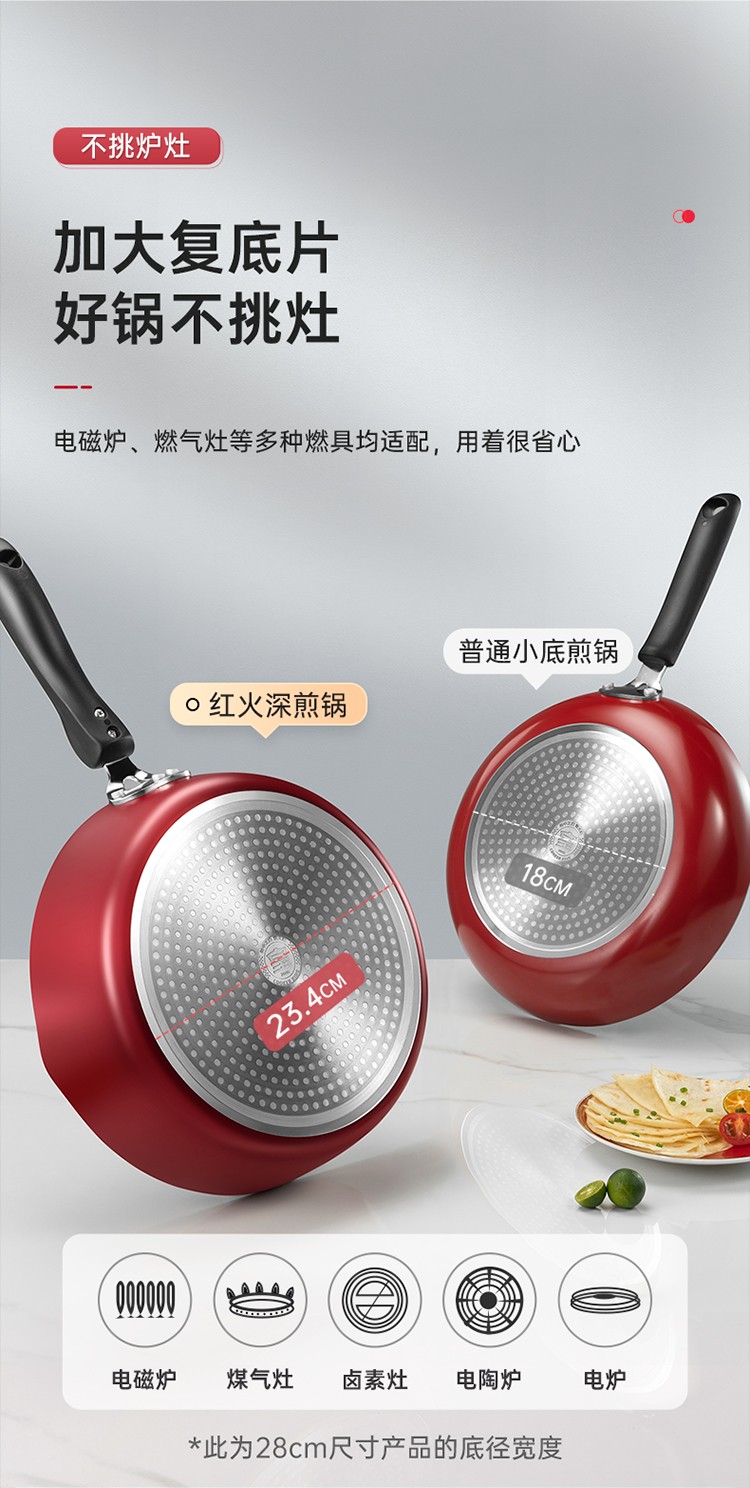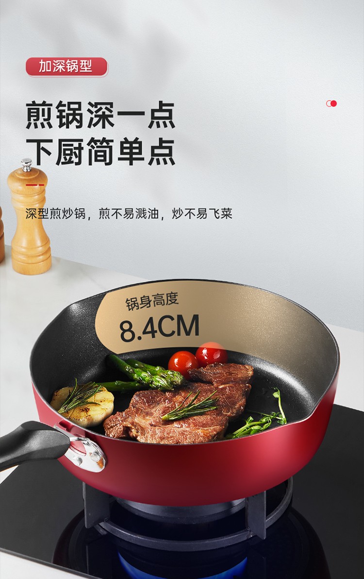 炊大皇平底锅不粘锅红火深煎锅JG28HH-1 28cm+锅盖(单位:个) 枫叶色