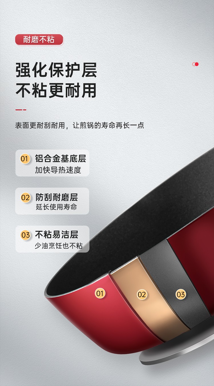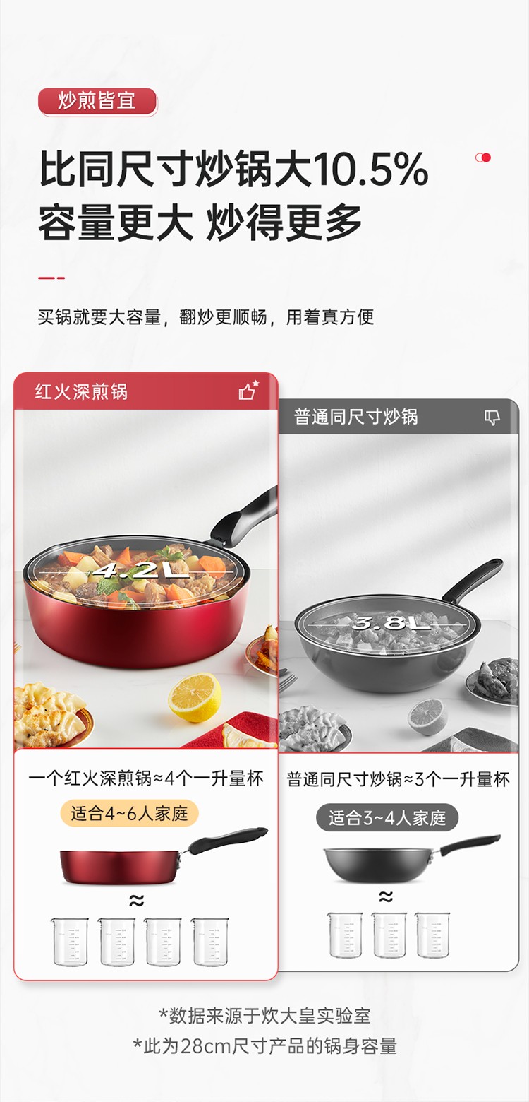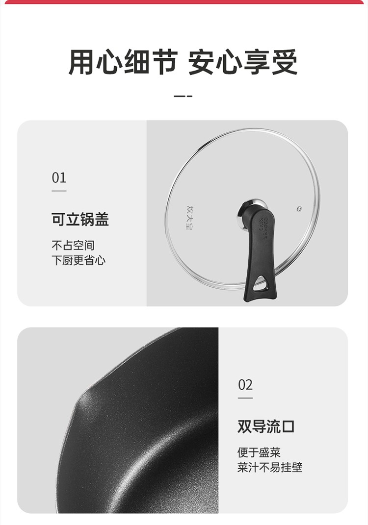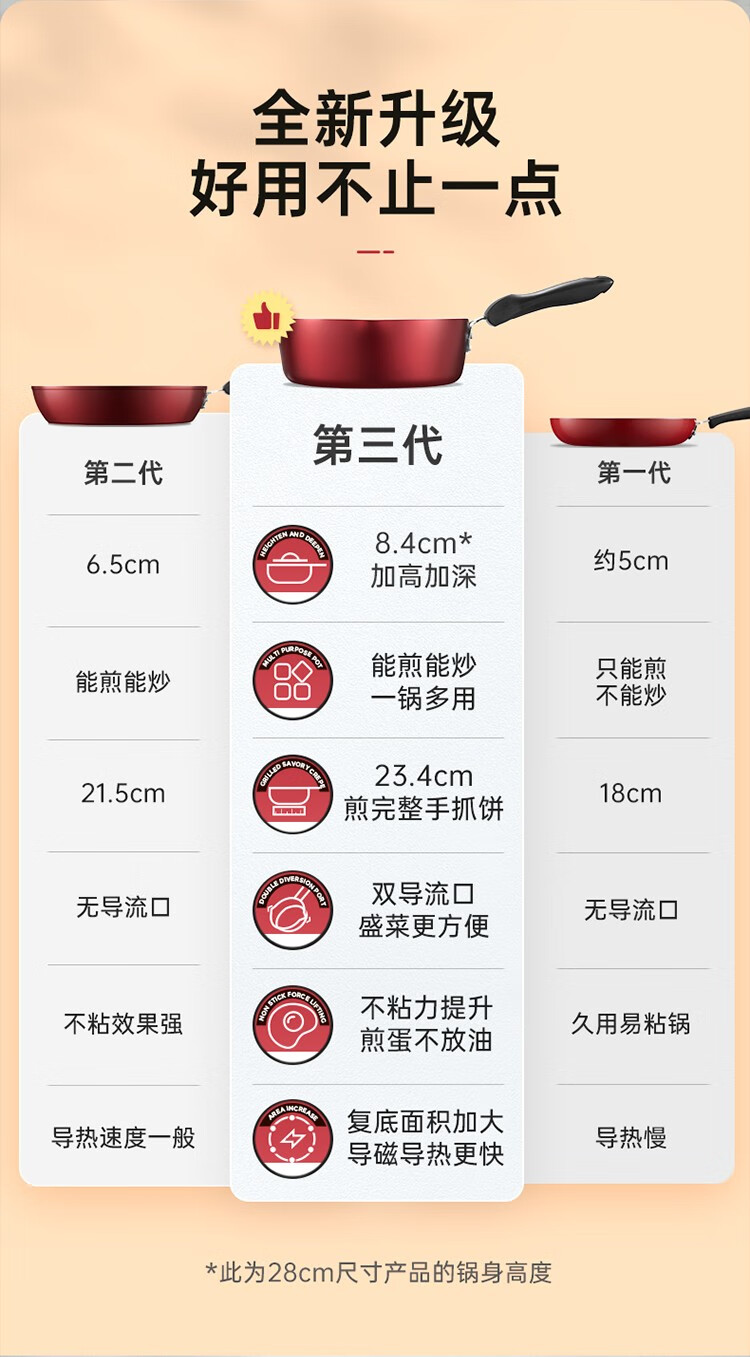 炊大皇平底锅不粘锅红火深煎锅JG28HH-1 28cm+锅盖(单位:个) 枫叶色
