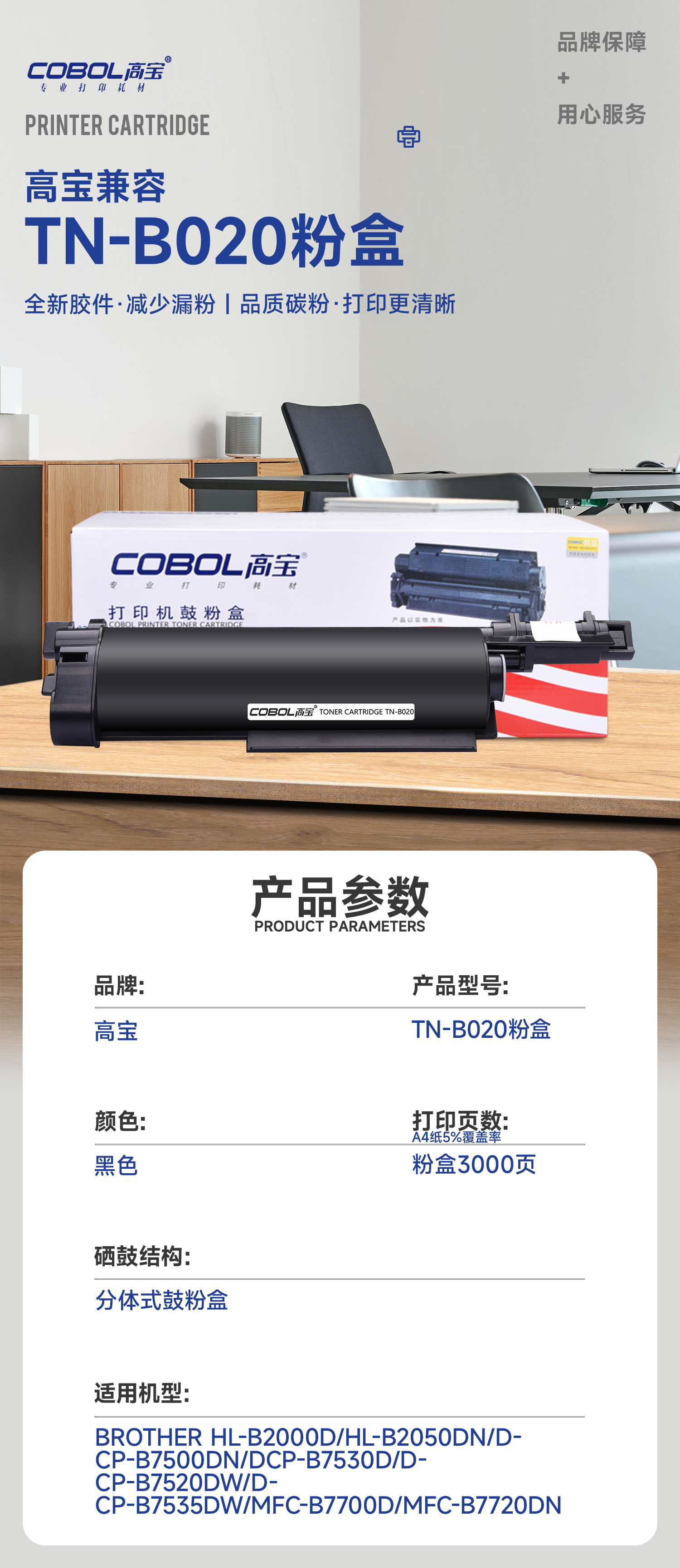 高宝COBOL TN-B020粉盒适用兄弟7530 7500 2050 2000 7720 77/支 曜石黑