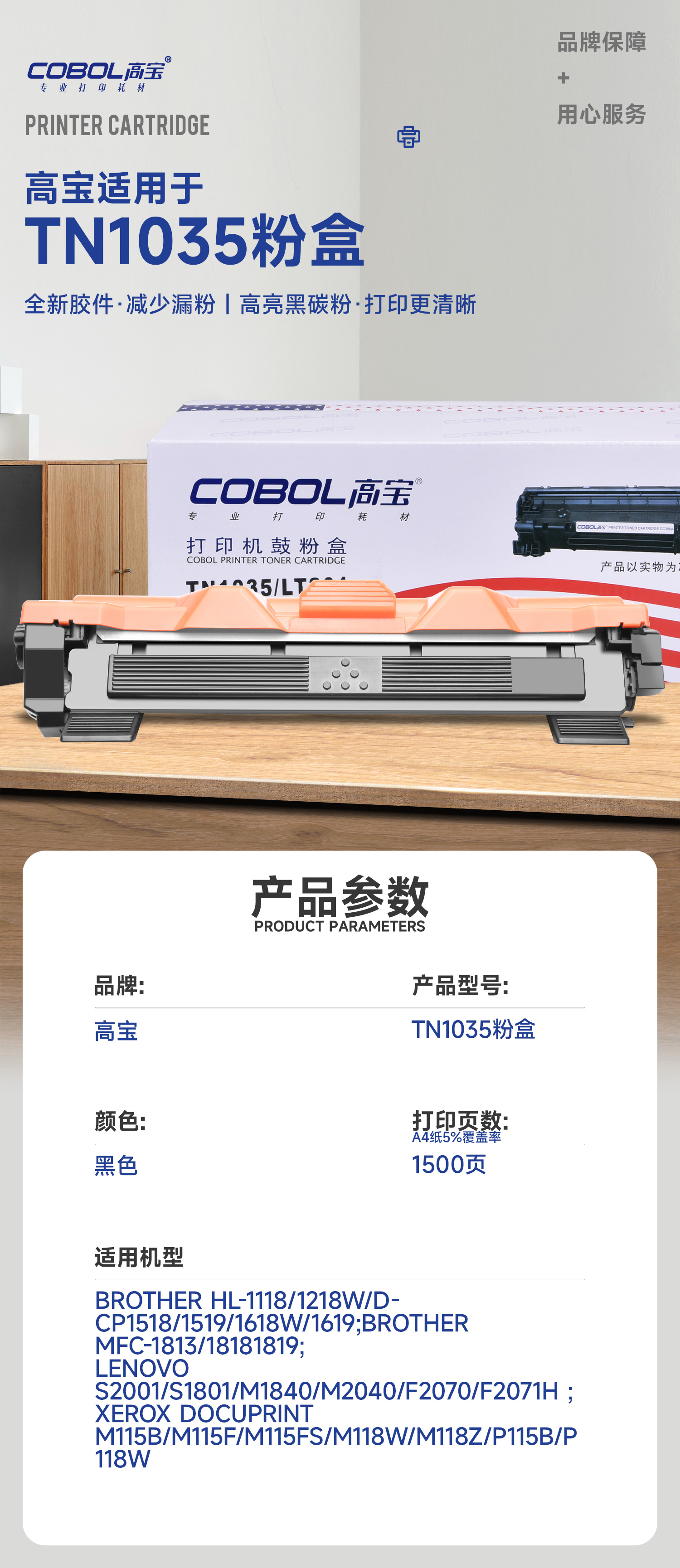 高宝TN1035适用兄弟HL-1118/1218W/DCP1518/1519/1618W/161/支 曜石黑