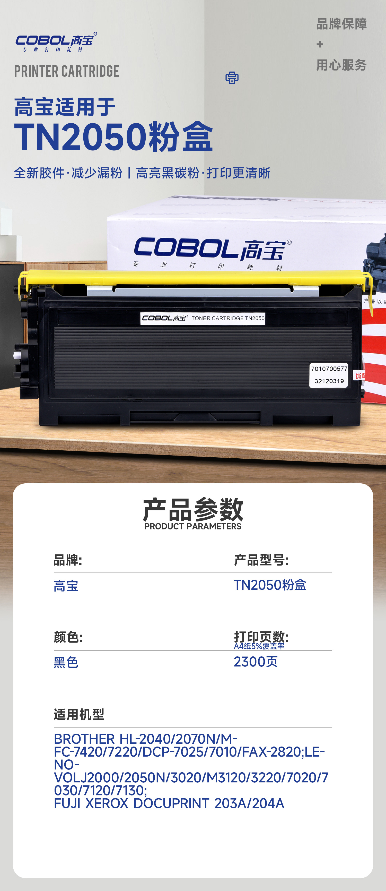 高宝COBOL TN2050粉盒适用兄弟 HL-2040/2070N/MFC-7420/7220/支 曜石黑