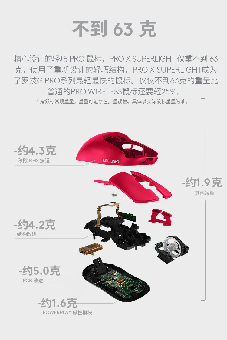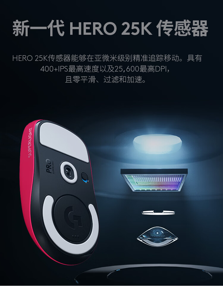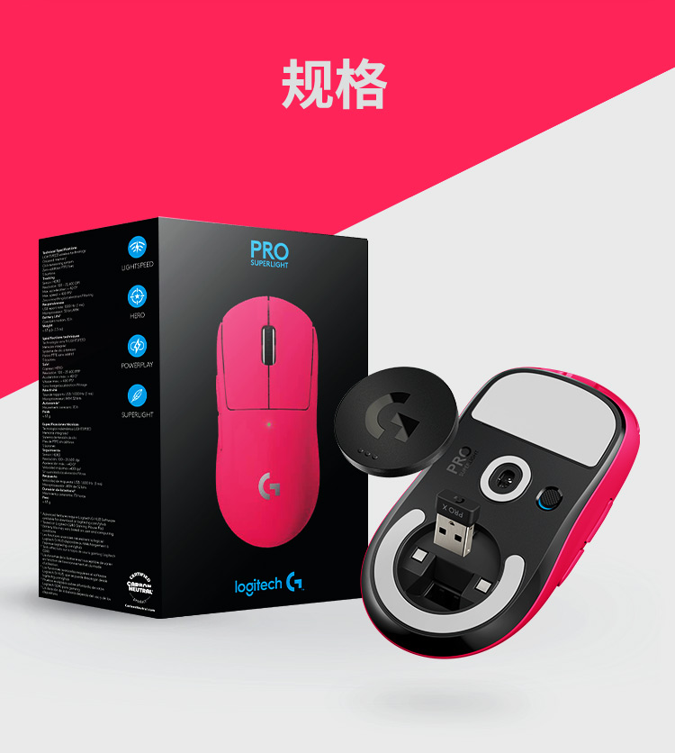 罗技(G)PRO X SUPERLIGHT无线游戏鼠标 GPW2狗屁王二代 轻量化63g电竞鼠标/个 粉色