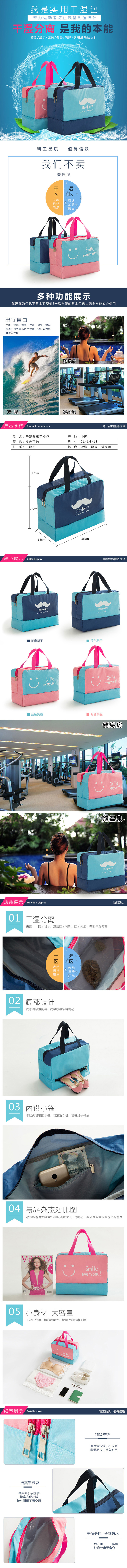 三极 Tri-polar TP1937 运动沙滩干湿分离收纳包 28*36*18cm (单位:个) 蓝色笑脸
