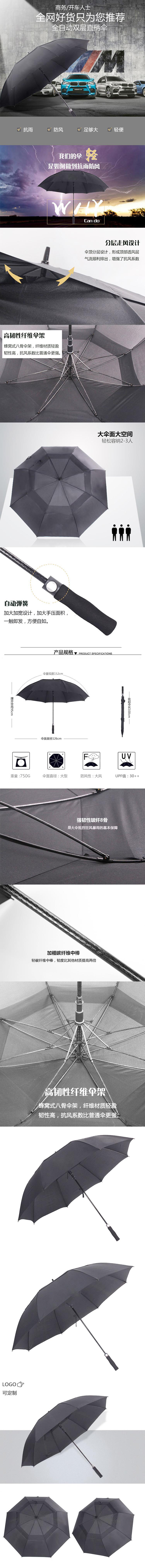 三极 Tri-polar TP7003 假双层直柄双人伞 8骨 (单位:把) 曜石黑