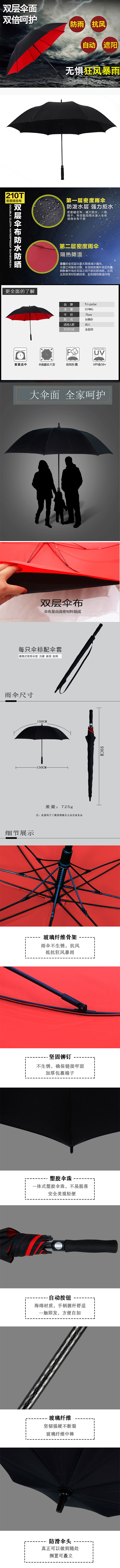 三极 Tri-polar TP7001 双层自动2-3大直杆商务雨伞 30寸8骨 (单位:把) 黑色