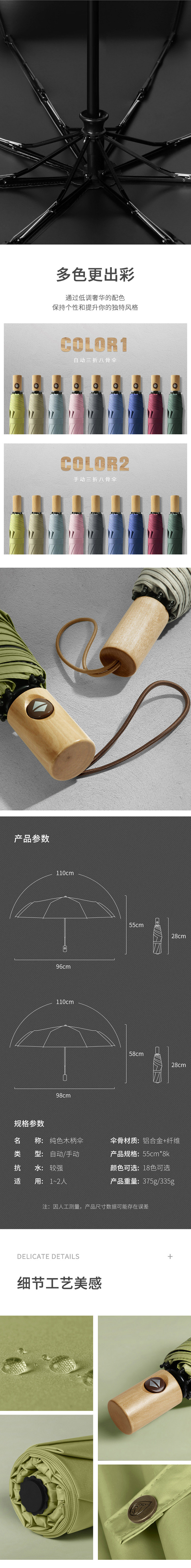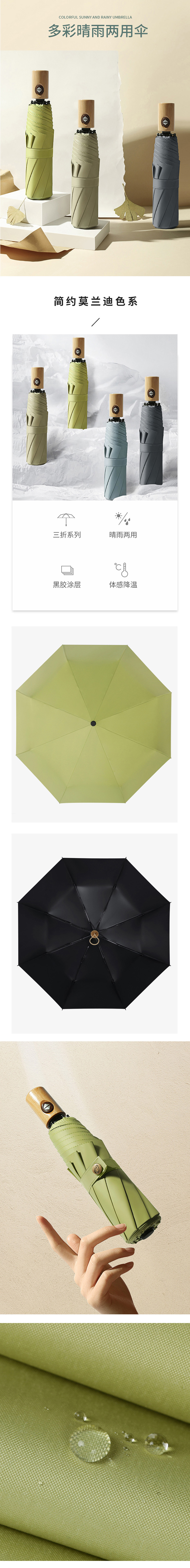 三极 Tri-polar TP7027 手动木柄黑胶伞 8骨 (单位:把) 烟波蓝