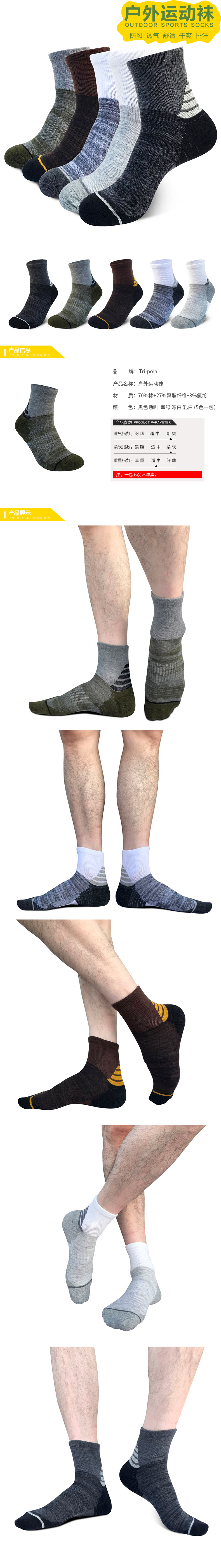 三极 Tri-polar TP3341 男士中筒秋冬拉毛篮球运动袜 5双装 40-44码(单位:包) 混色