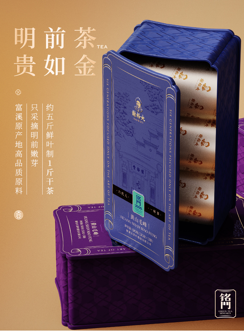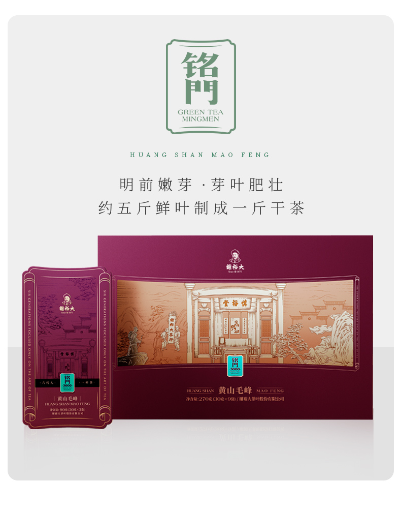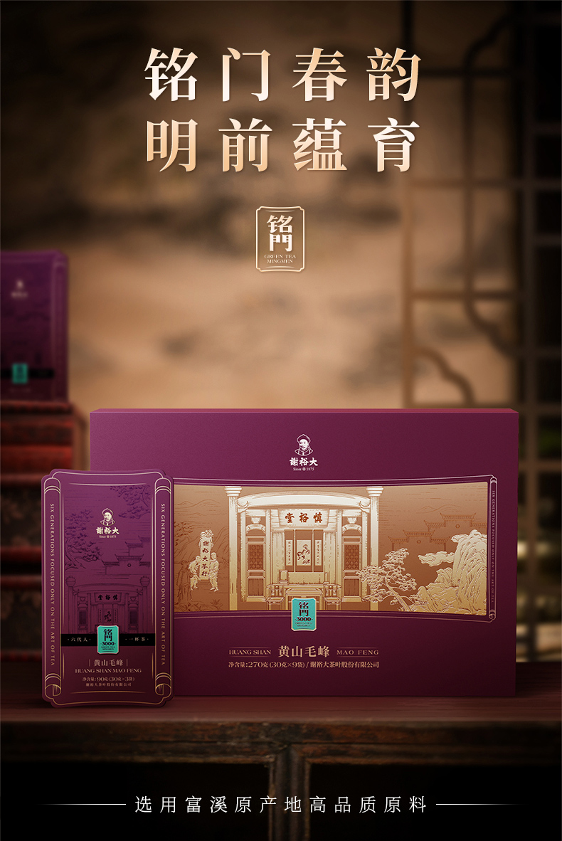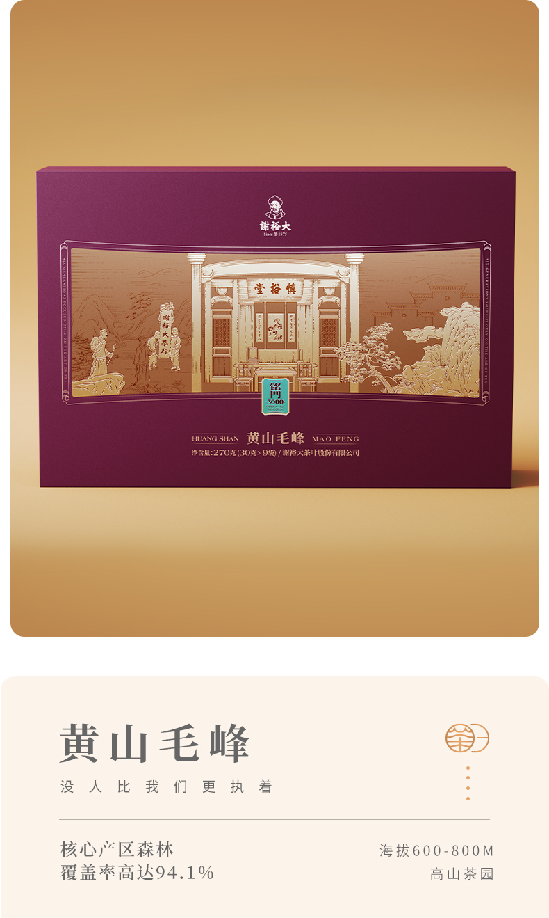 谢裕大黄山毛峰铭门3000绿茶礼盒270g(单位:盒) 红色