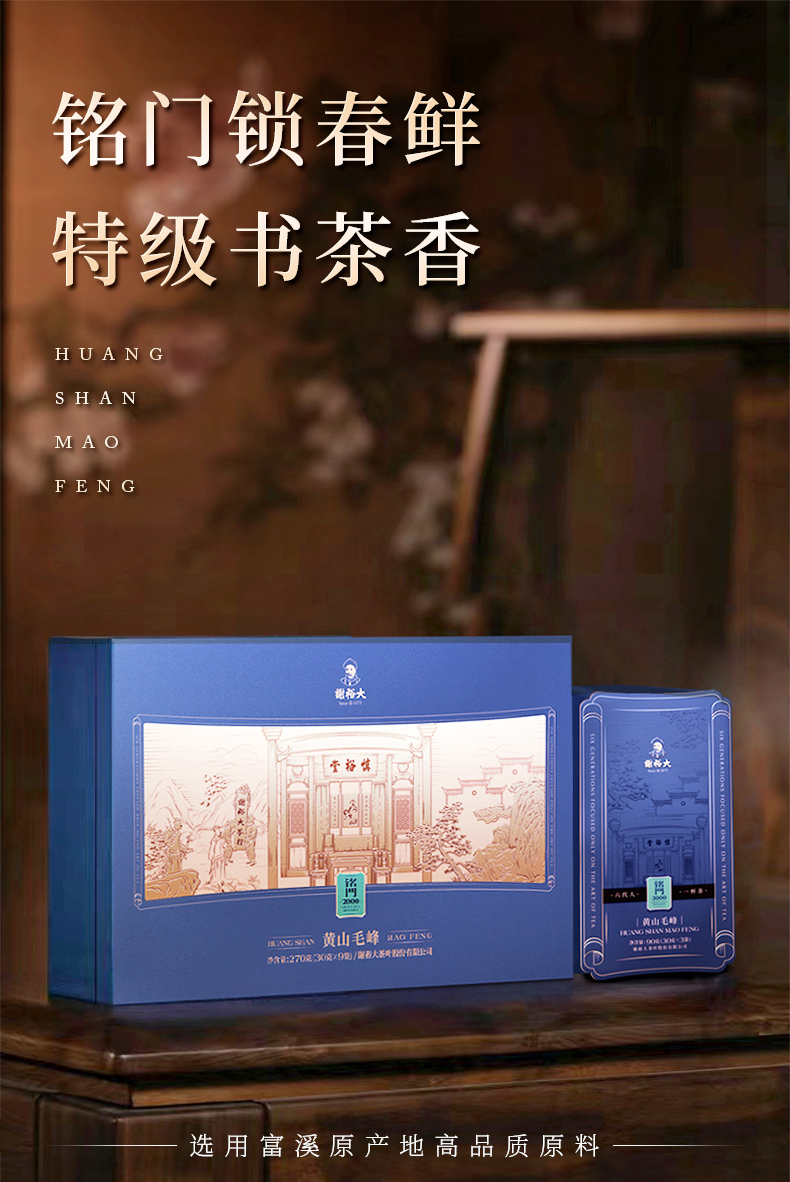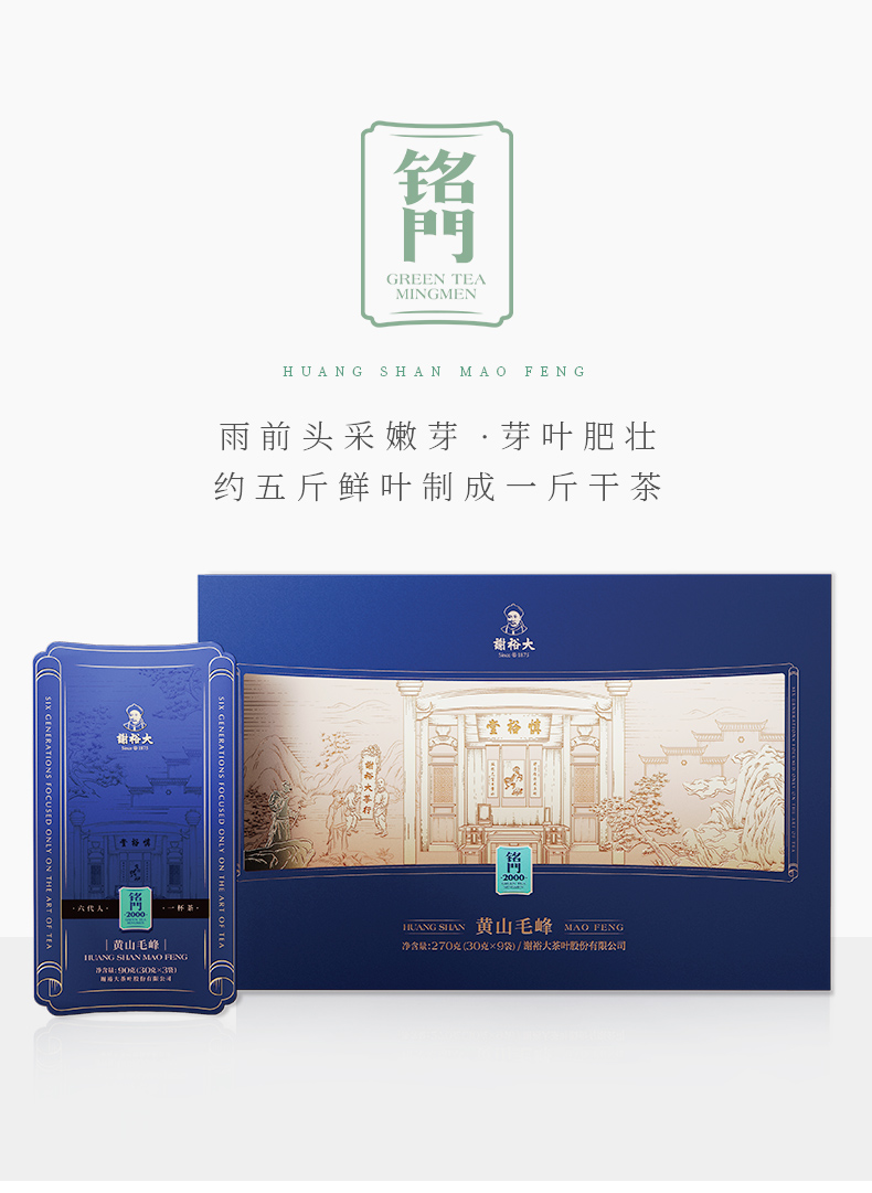 谢裕大黄山毛峰铭门2000绿茶礼盒270g(单位:盒) 蓝色