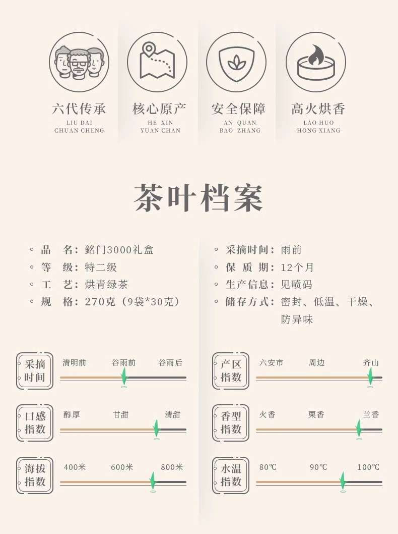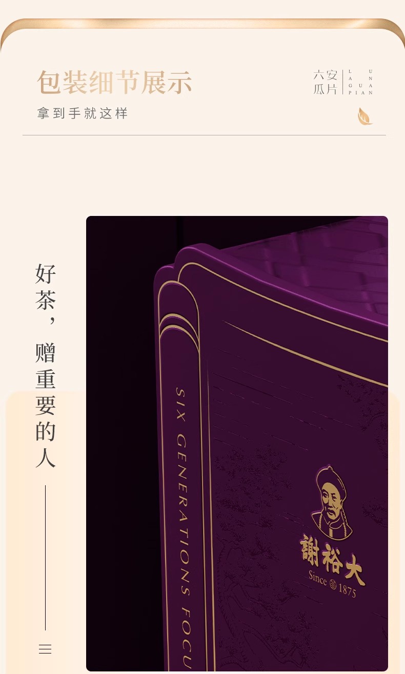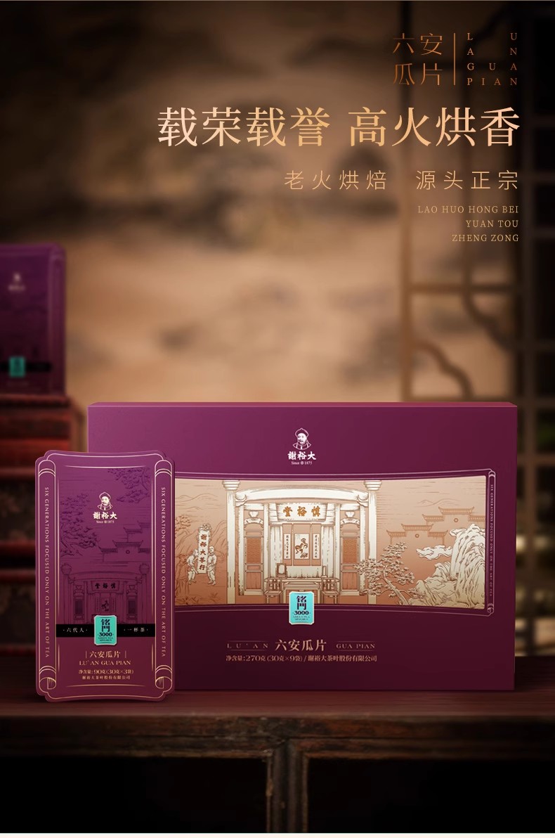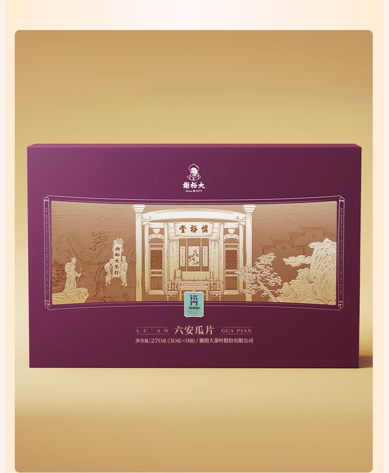 谢裕大六安瓜片铭门3000绿茶礼盒270g/盒(单位:盒) 红色