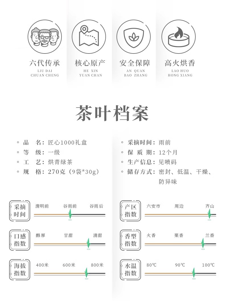 谢裕大六安瓜片匠心1000绿茶礼盒270g/盒(单位:盒) 灰色