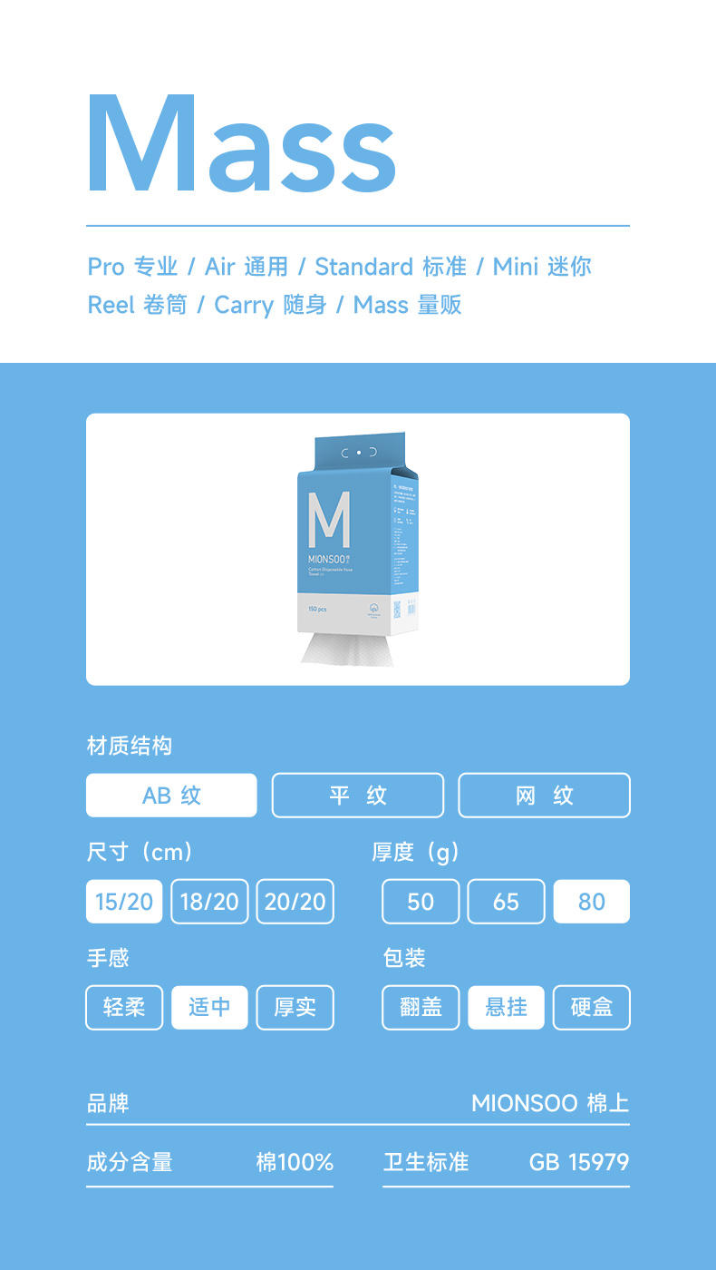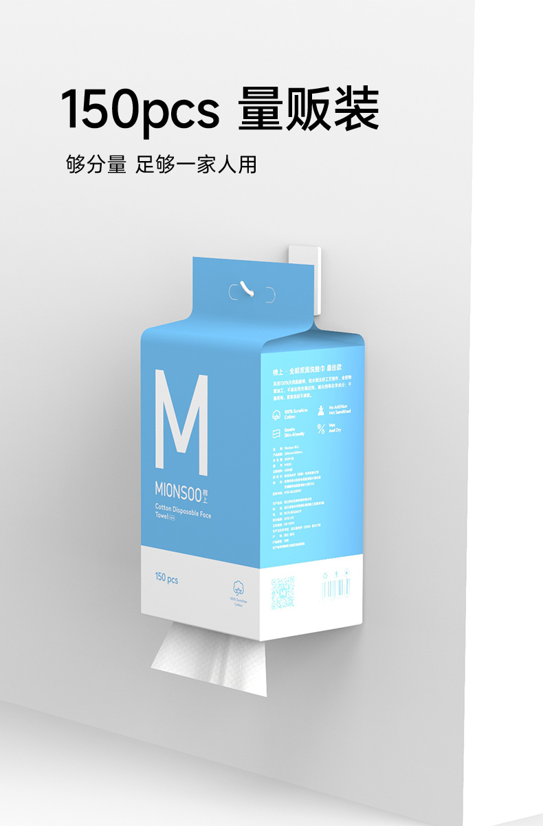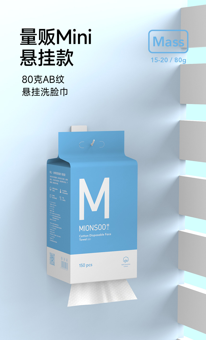 棉上悬挂款mini一次性棉柔巾抽取式家庭装M1026 150抽/提(单位:提) 1提(蓝色)