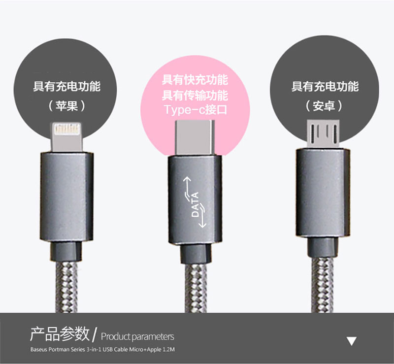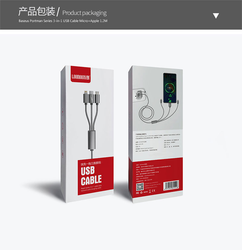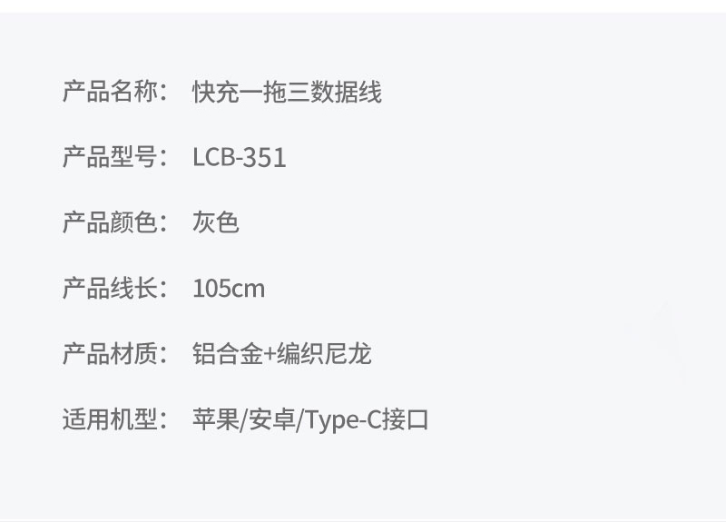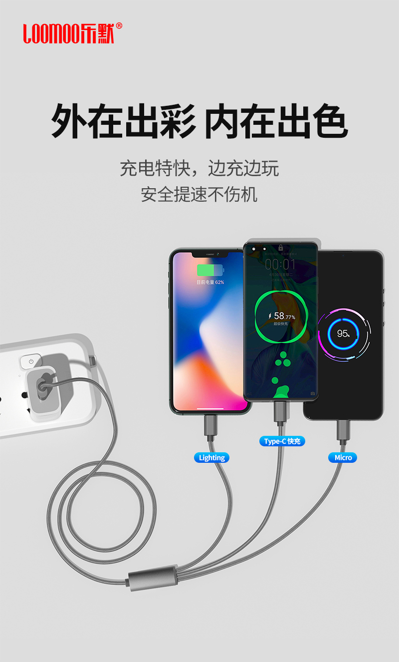 loomoo乐默 LCB-351快充一拖三数据线 灰色