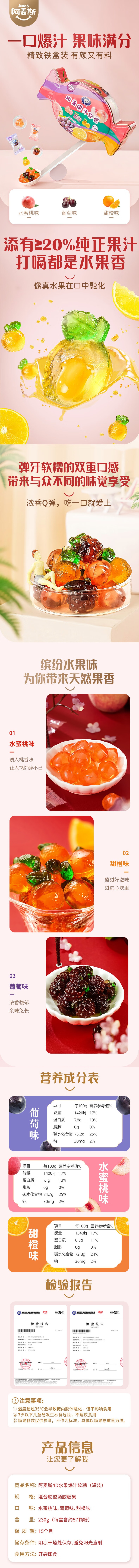 阿麦斯4D水果爆汁软糖( 罐装)230g 单位:盒 拿铁色