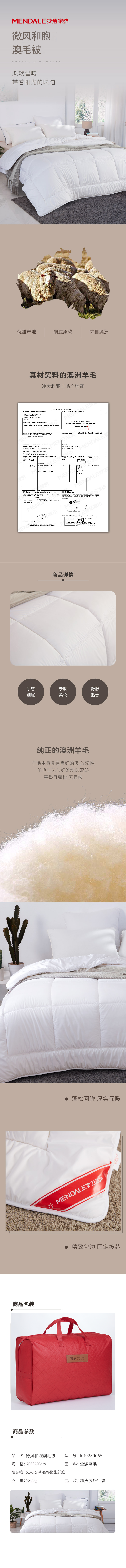 梦洁家纺 1010289065 200*230cm 微风和煦澳毛被 纯色 白色(单位:床)