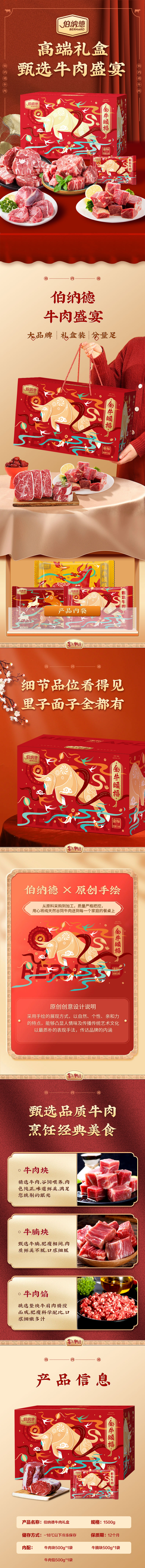 伯纳德(bonade) 纯牛肉礼盒-欣选 1500g 伯纳德澳洲纯牛肉礼盒 红色(单位:盒)