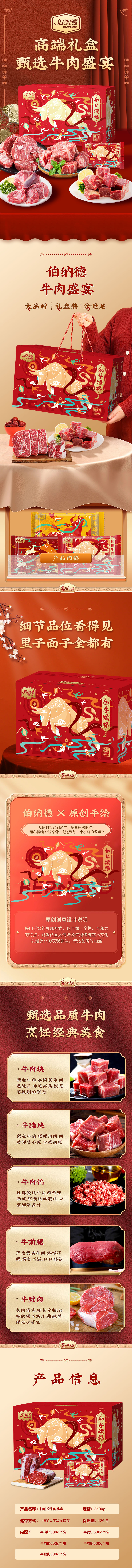 伯纳德(bonade) 纯牛肉礼盒-严选 2500g 伯纳德澳洲纯牛肉礼盒 红色(单位:盒)
