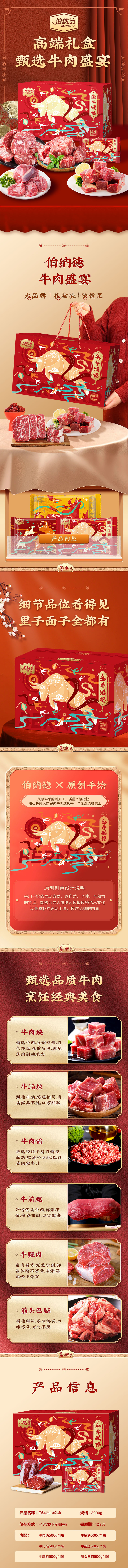 伯纳德(bonade) 纯牛肉礼盒-臻选 3000g 伯纳德澳洲纯牛肉礼盒 红色(单位:盒)