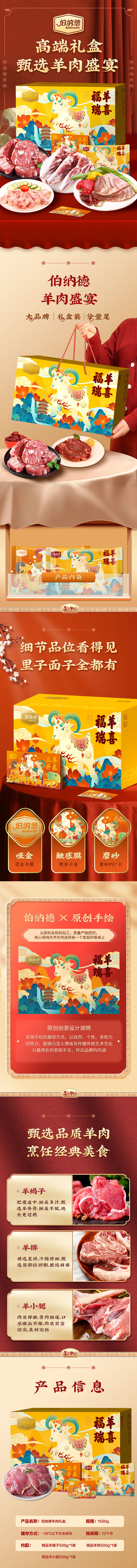 伯纳德(bonade) 298型 1500g 伯纳德甄选羊肉礼盒 黄色(单位:盒)