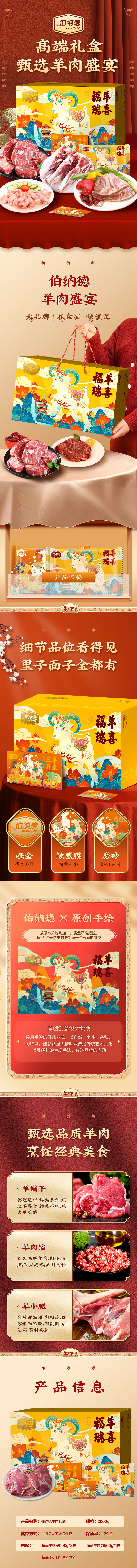 伯纳德(bonade) 398型 2000g 伯纳德甄选羊肉礼盒 黄色(单位:盒)