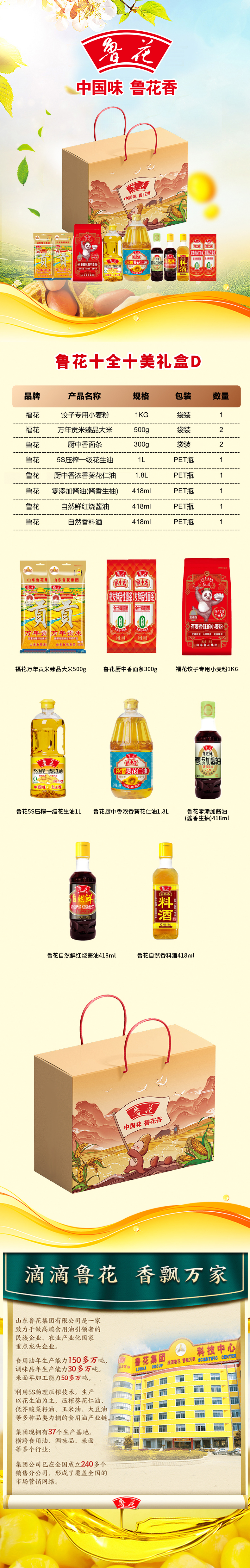 鲁花 十全十美礼盒D 7.44kg 粮油米面礼盒 红色(单位:盒)