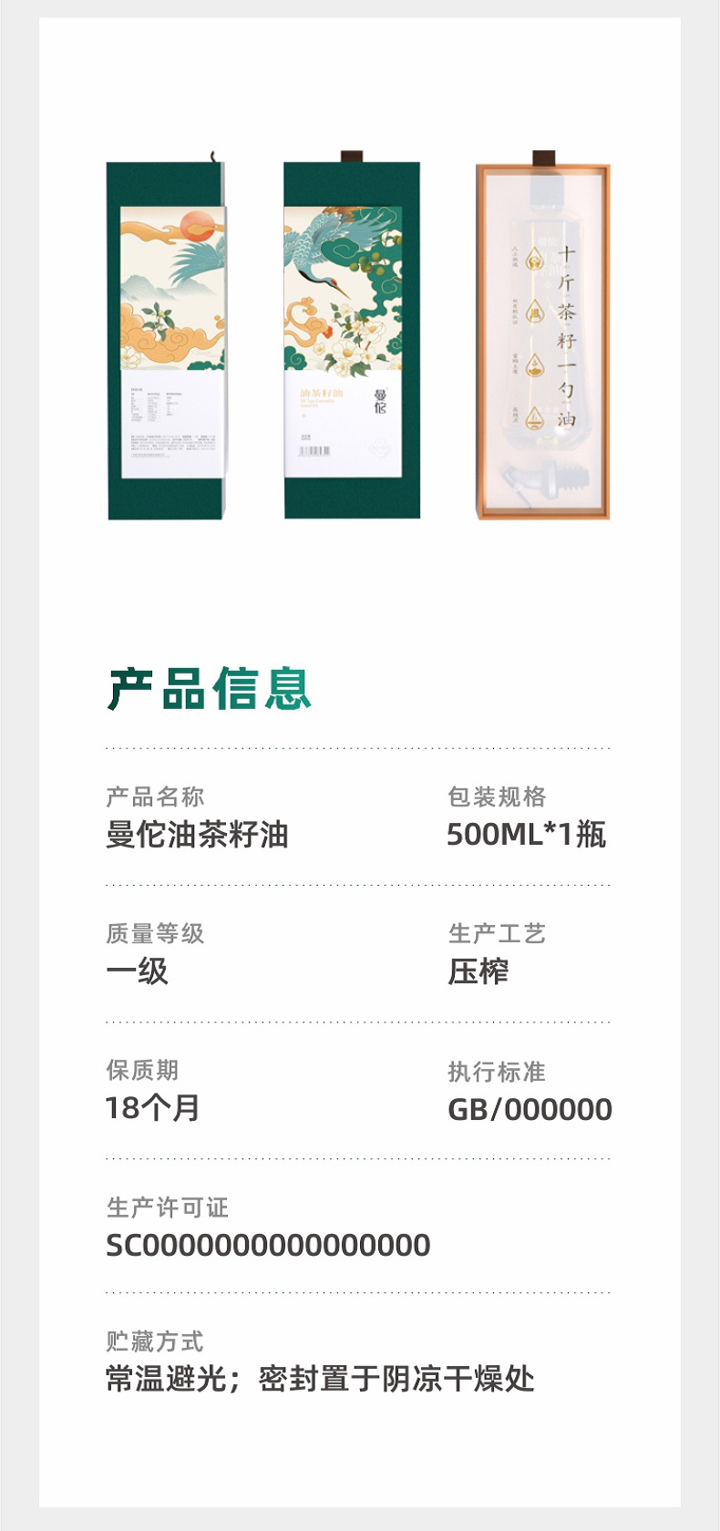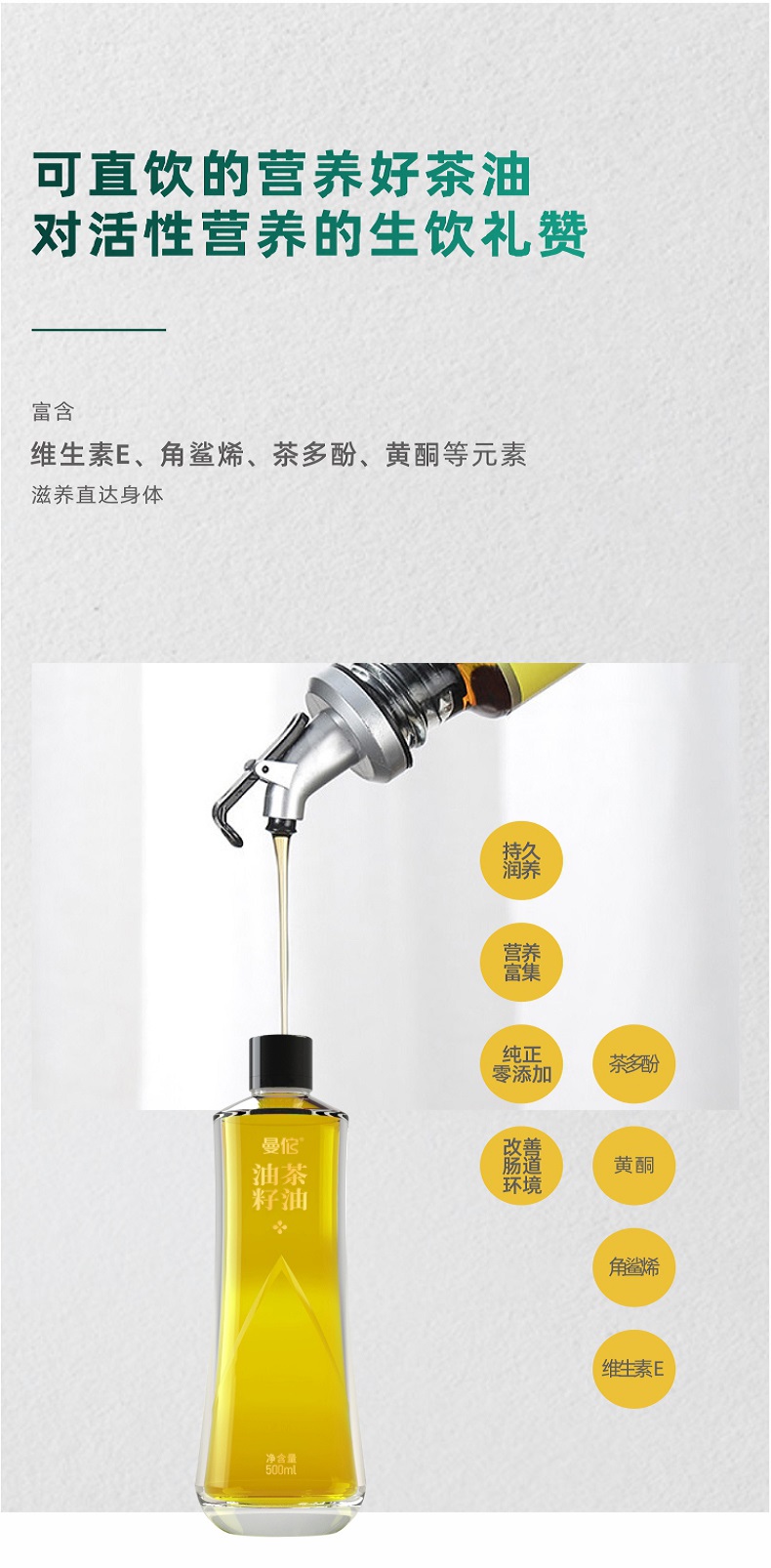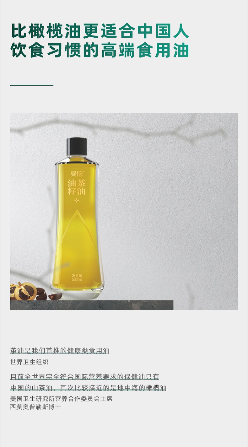 曼佗 茶油 500ml/瓶 双有机山茶籽油礼盒装 金色(单位:瓶)
