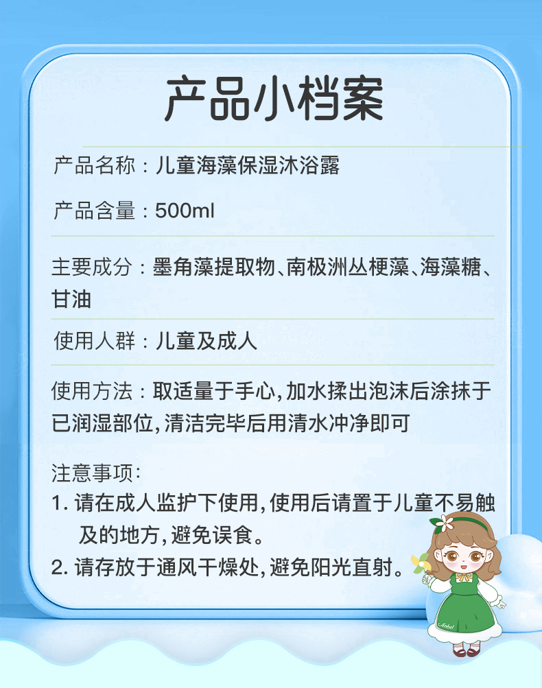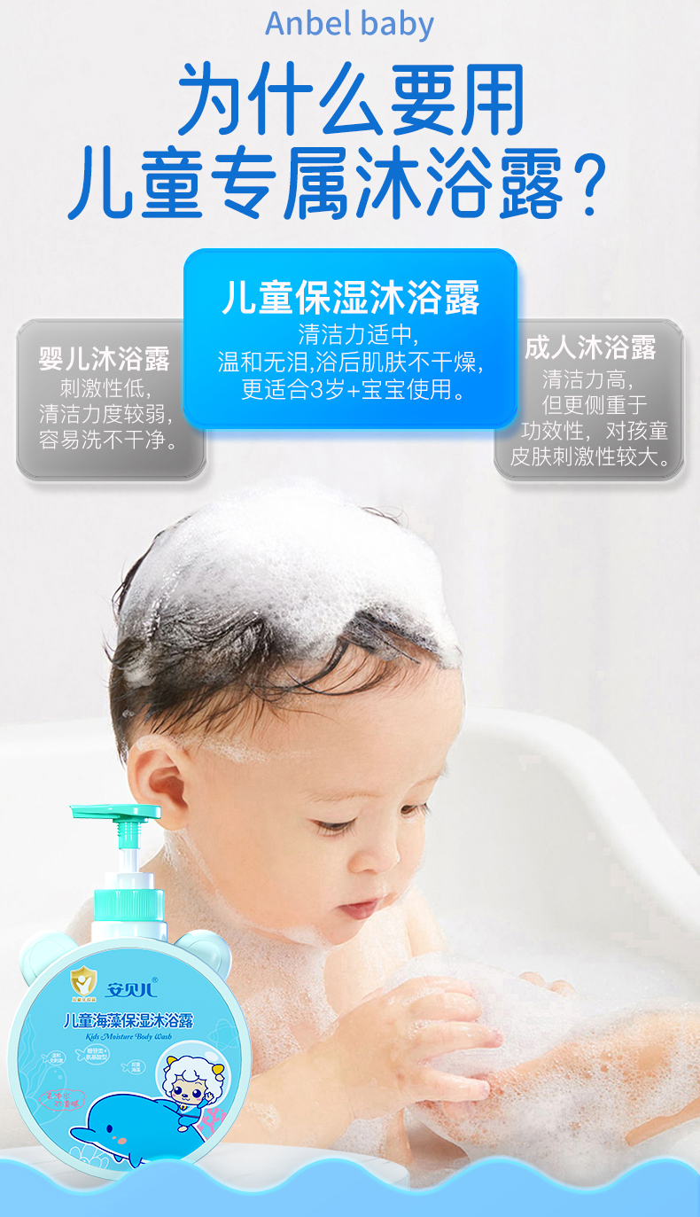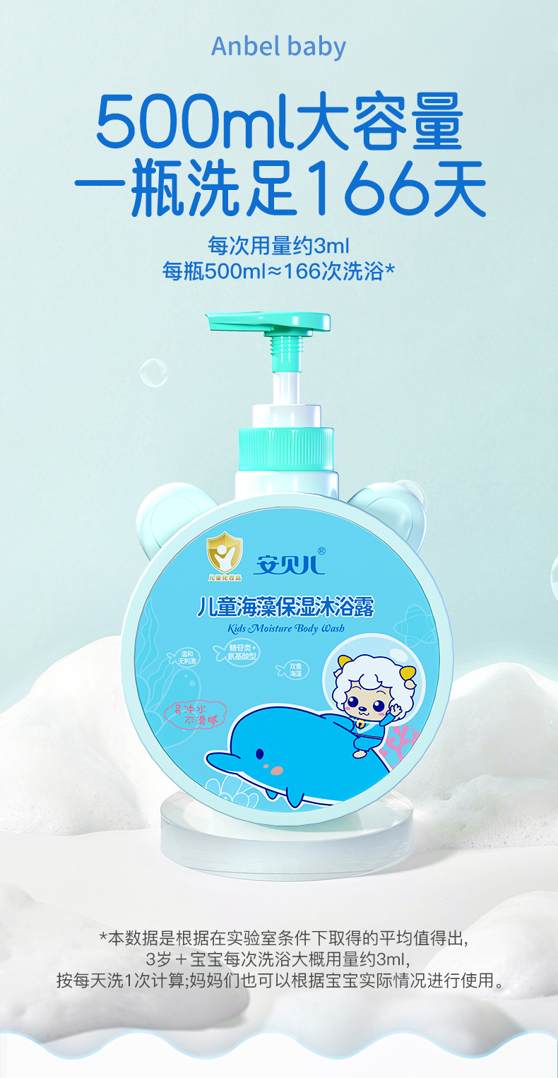 安贝儿 沐浴露 500ml 儿童海藻保湿 蓝色(单位:瓶)